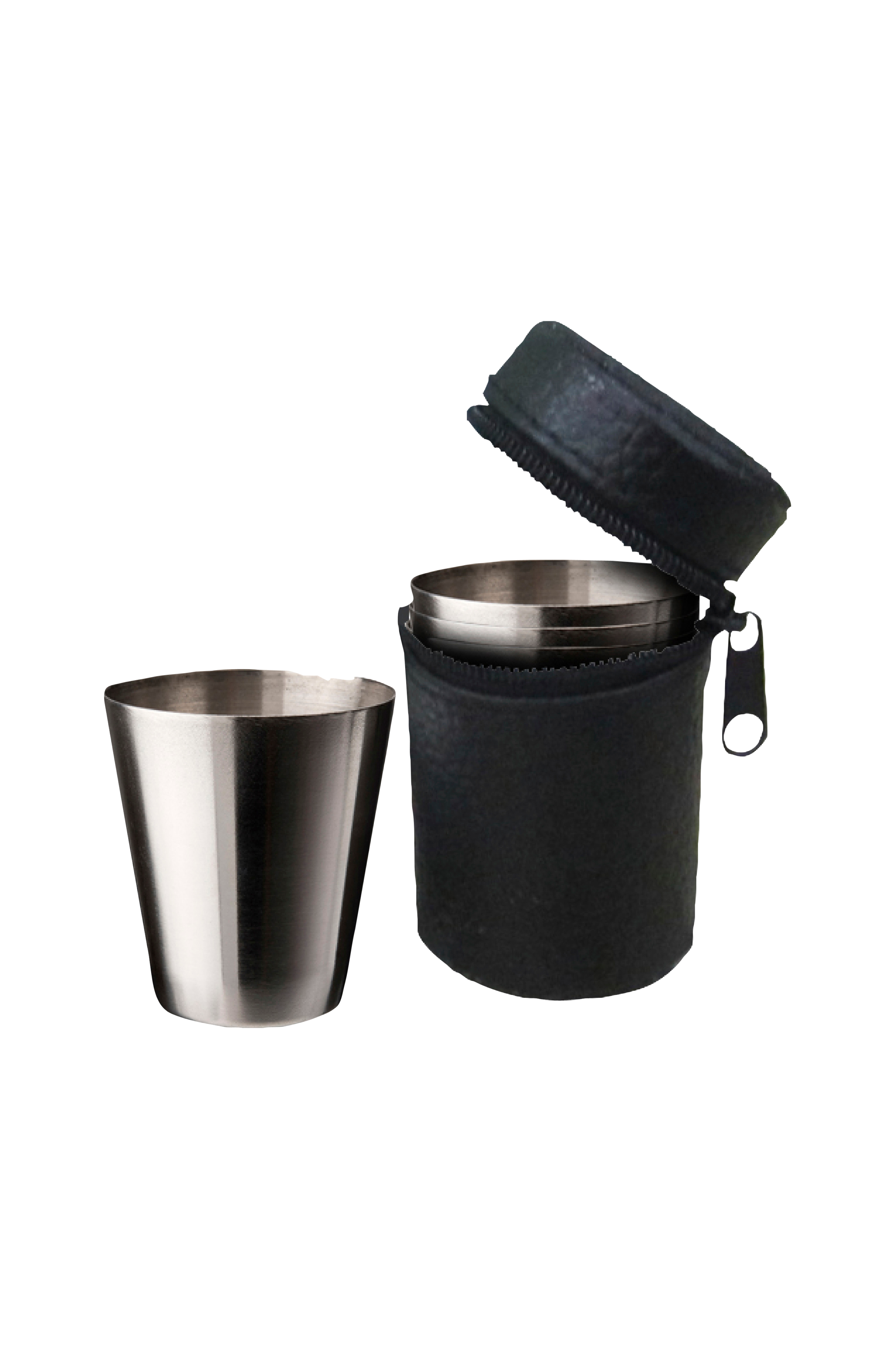 Benny-snapsimukit mustassa nahkakotelossa, 4/pakkaus. Vetoisuus 3 cl, korkeus 4,5 cm.