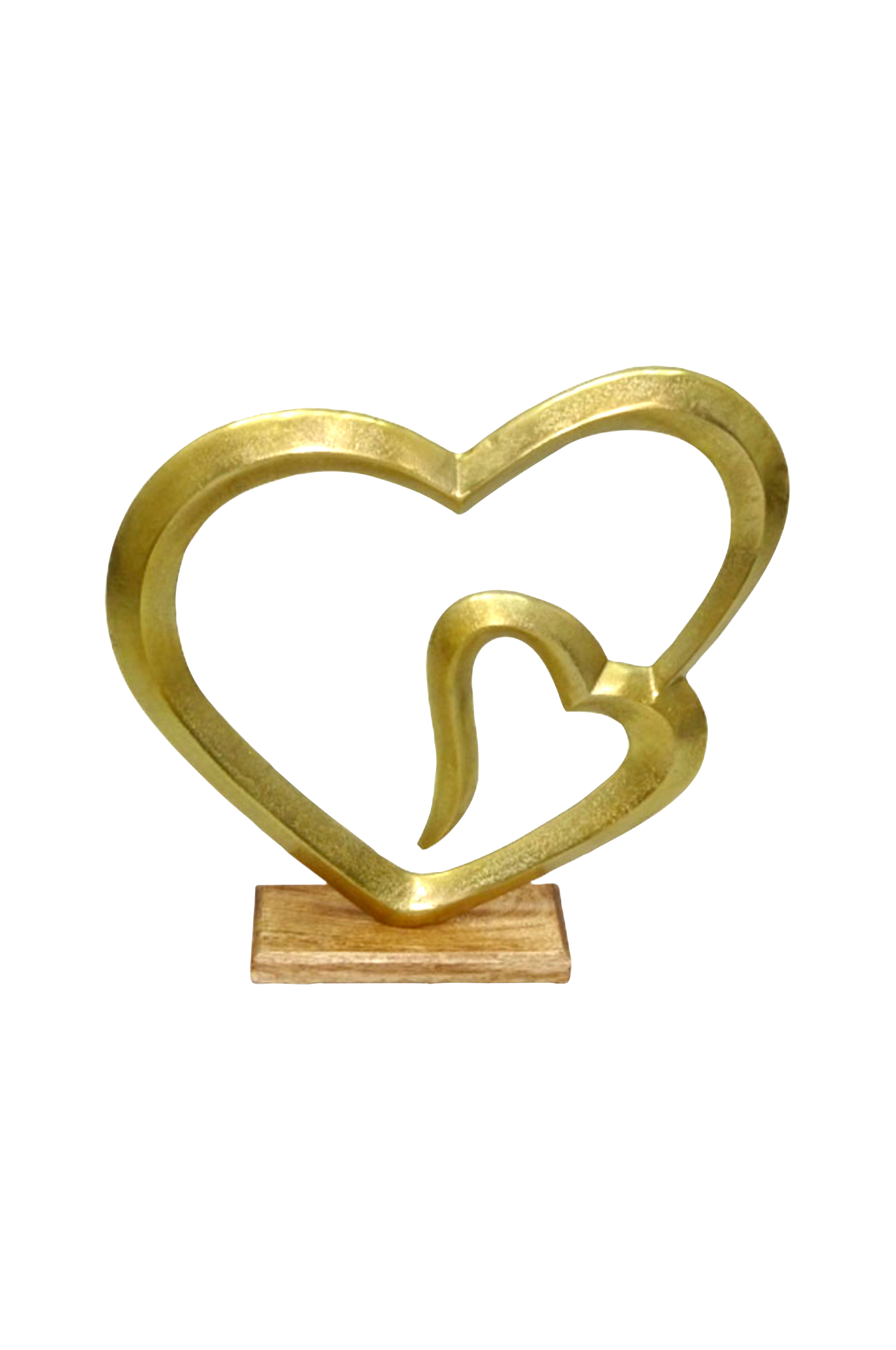 Kullanvärinen Helia-sydän alumiinia, puinen jalka. 40*39*7,5 cm.