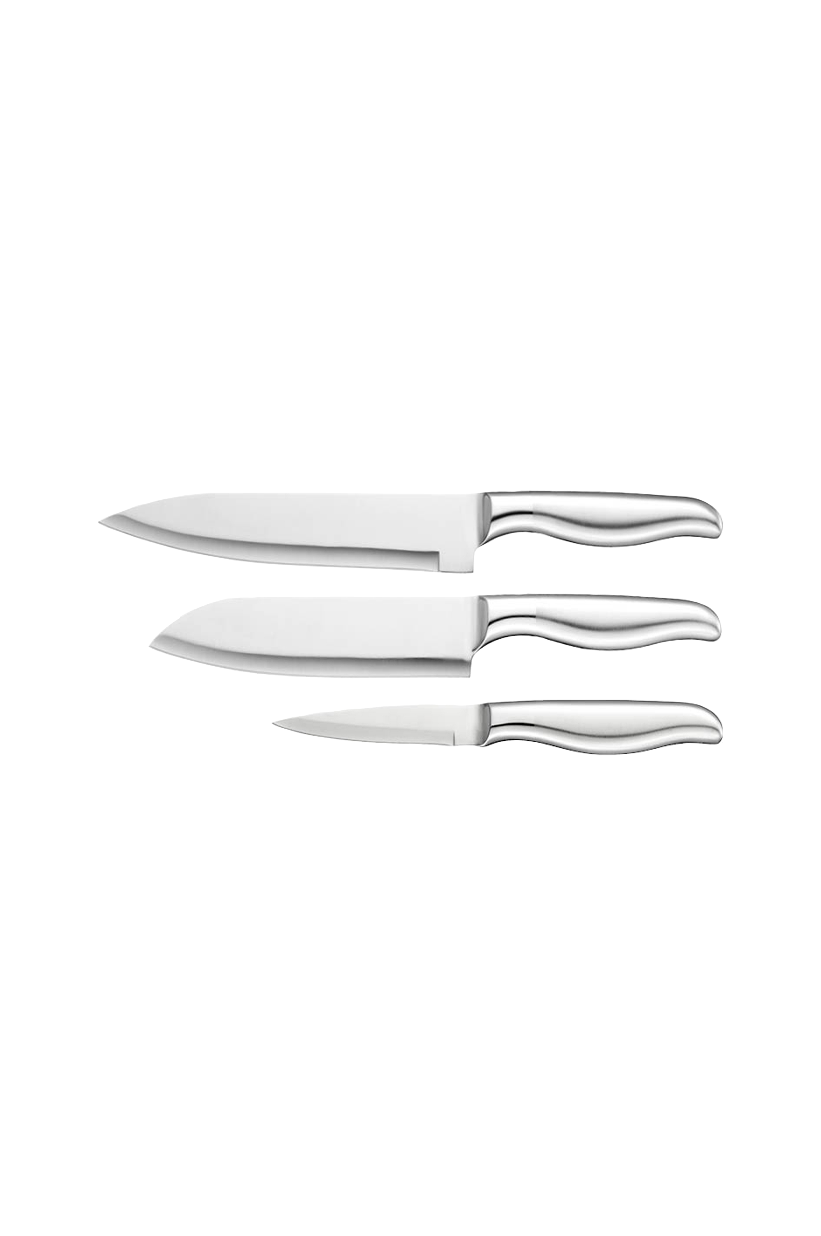 3-osainen Kita-veitsisetti ruostumatonta terästä - kokkiveitsi, japanilainen santoku-veitsi ja kuorimaveitsi