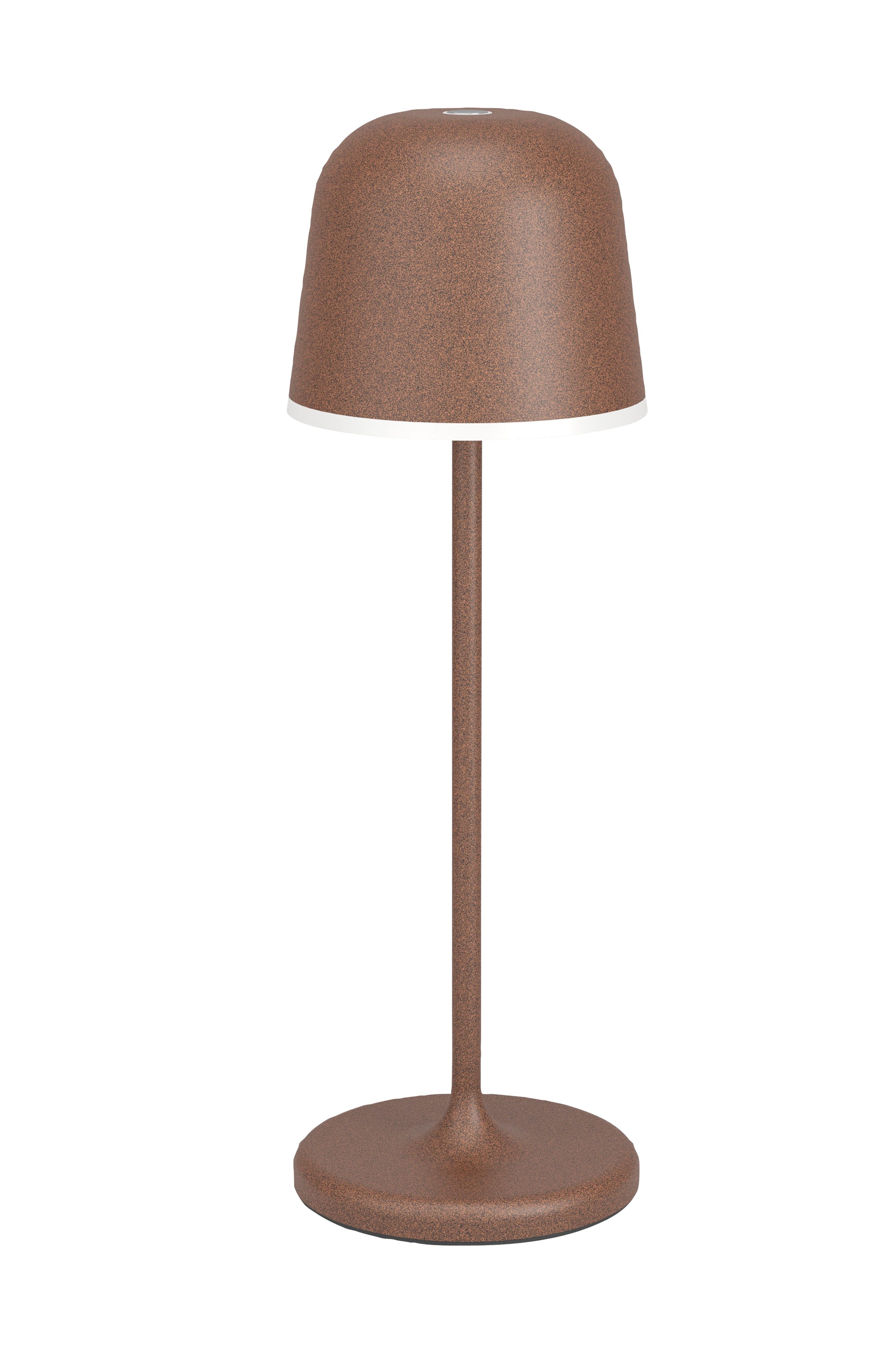 mannera on johdoton pöytävalaisin, jossa on alumiinista ja teräksestä valmistettu runko, jossa on musta, harmaa, punaruskea tai hiekanvärinen pinta ja valkoinen muovinen valonhajotin. Integroitujen led-komponenttien ansiosta tuote tuottaa kauniin lämpimän valkoisen valon, joka valaisee minkä tahansa ulkotilan. Pöytävalaisin voidaan kytkeä päälle tai pois päältä, ja se on himmennettävissä lampunvarjostimen yläosassa olevan "touch me"-elementin avulla. Kannettavassa pöytävalaisimessa on sisäänrakennettu akku, jonka ansiosta tuotetta voi kuljettaa missä tahansa ulkotilassa helposti, ja se on ladattavissa usb-c-kaapelin avulla (ei sisälly toimitukseen). Ulkona käytettävällä pöytävalaisimella on ip54-suojausluokitus, mikä tarkoittaa, että se on pöly- ja roiskevesisuojattu ja sopii ulkokäyttöön. Tyylikkään ja toiminnallisen muotoilunsa ansiosta ulkotilojen pöytävalaisin sopii mihin tahansa moderniin ulkotilaan.