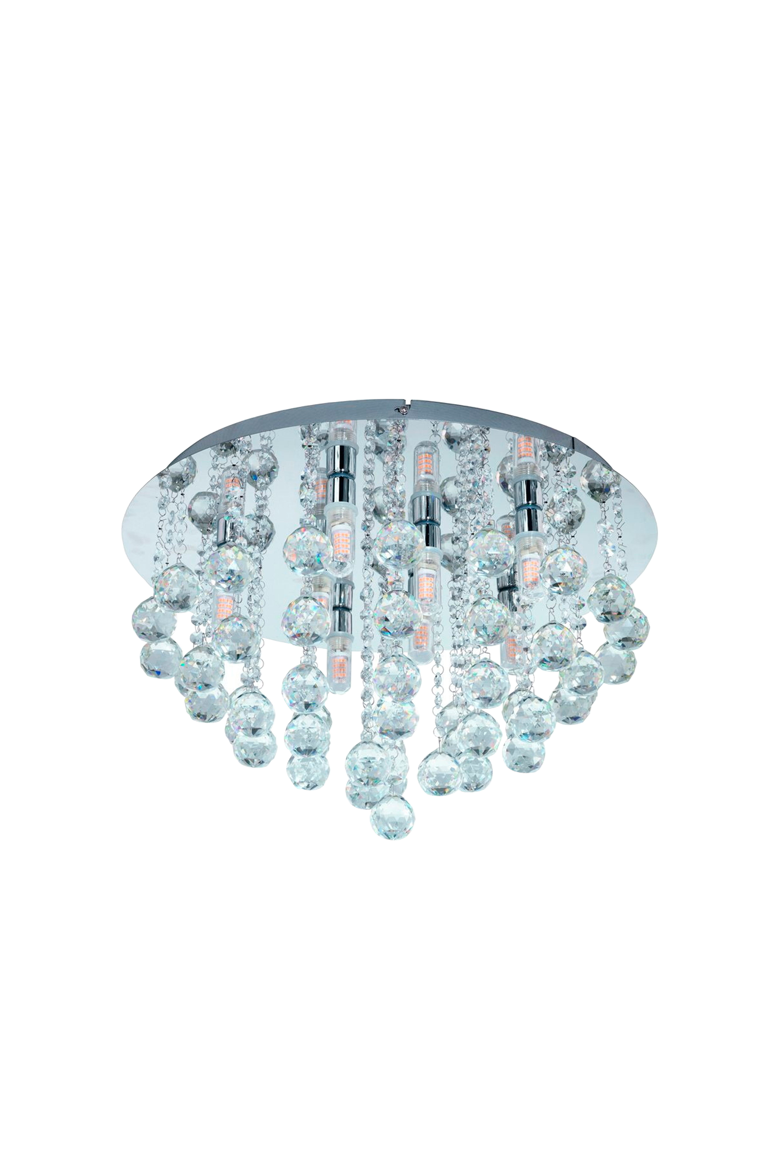 almonte led-kattovalaisimessa on krominvärinen pyöreä metallijalusta, joka on ripustettu lukuisilla kirkkailla kristalleilla. Korkealuokkaiset kristallielementit luovat kimaltelevan ja laadukkaan ilmeen heti valon syttyessä. Kattovalaisin soveltuu käytettäväksi kylpyhuoneessa, koska se on suojattu roiskevedeltä ip44-suojauksella. Tuotteen mukana toimitetaan g9-led-lamppuja, jotka tuottavat miellyttävää lämpimän valkoista valoa.