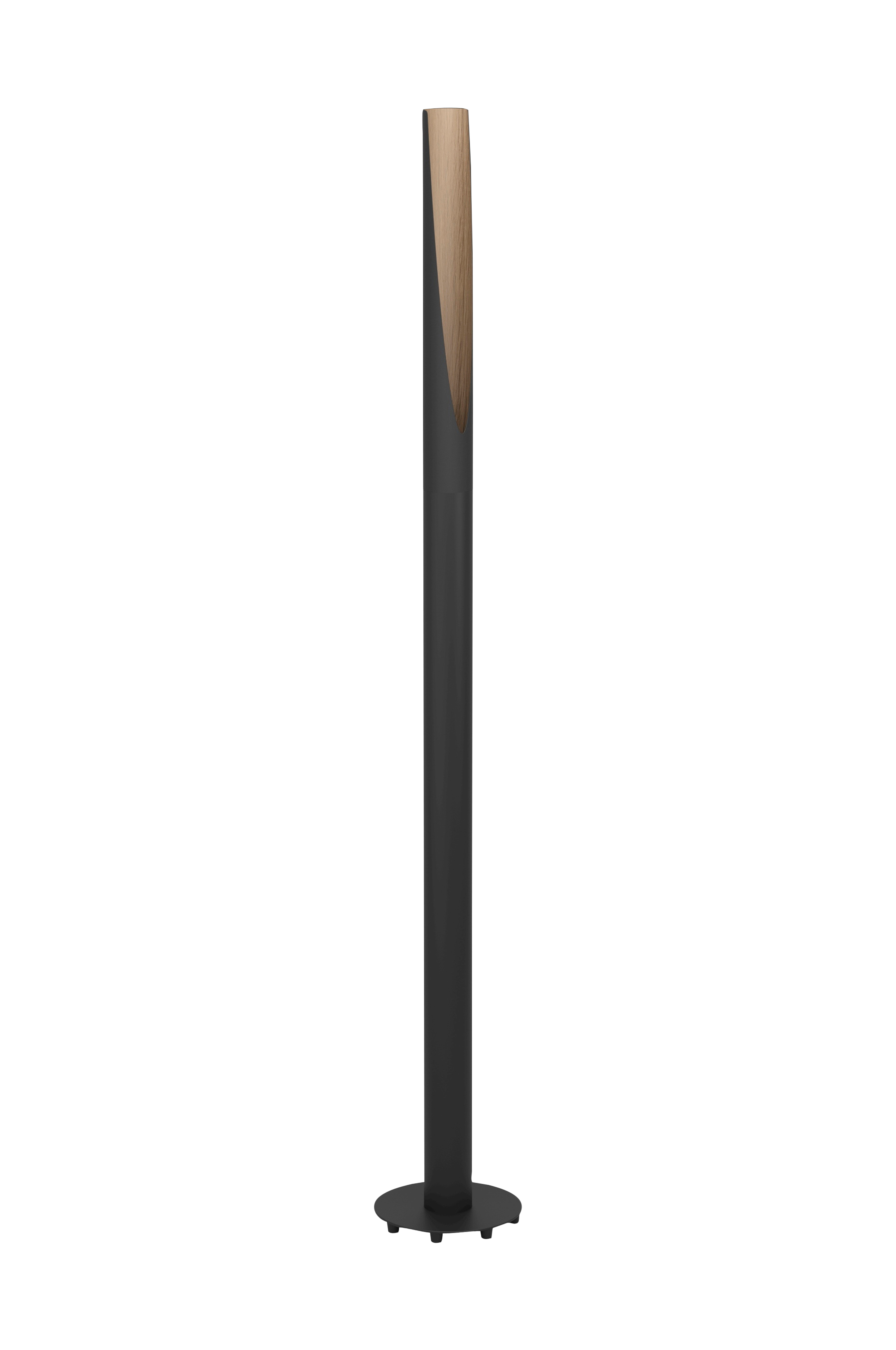 barbotto putkimainen lattiavalaisin, jossa on musta metallirunko, jonka sisäpuoli on viimeistelty puuviilulla. Lattiavalaisimen korkeus on 136,5 cm, ja se säteilee miellyttävää lämpimän valkoista valoa. Valaisimen viistetty yläosa antaa näkymän tyylikkääseen puuviilulla viimeisteltyyn sisustaan. Lattiavalaisin voidaan kytkeä päälle ja pois päältä helposti sisäänrakennetulla jalkakytkimellä. Nykyaikaisen muotoilunsa ansiosta lattiavalaisin antaa mihin tahansa huoneeseen tunnelmallisen ja tyylikkään valaistuksen, olipa kyseessä sitten makuuhuone, olohuone, ruokasali tai eteinen. Tuote sisältää 1 x led gu10 -lamppu.
