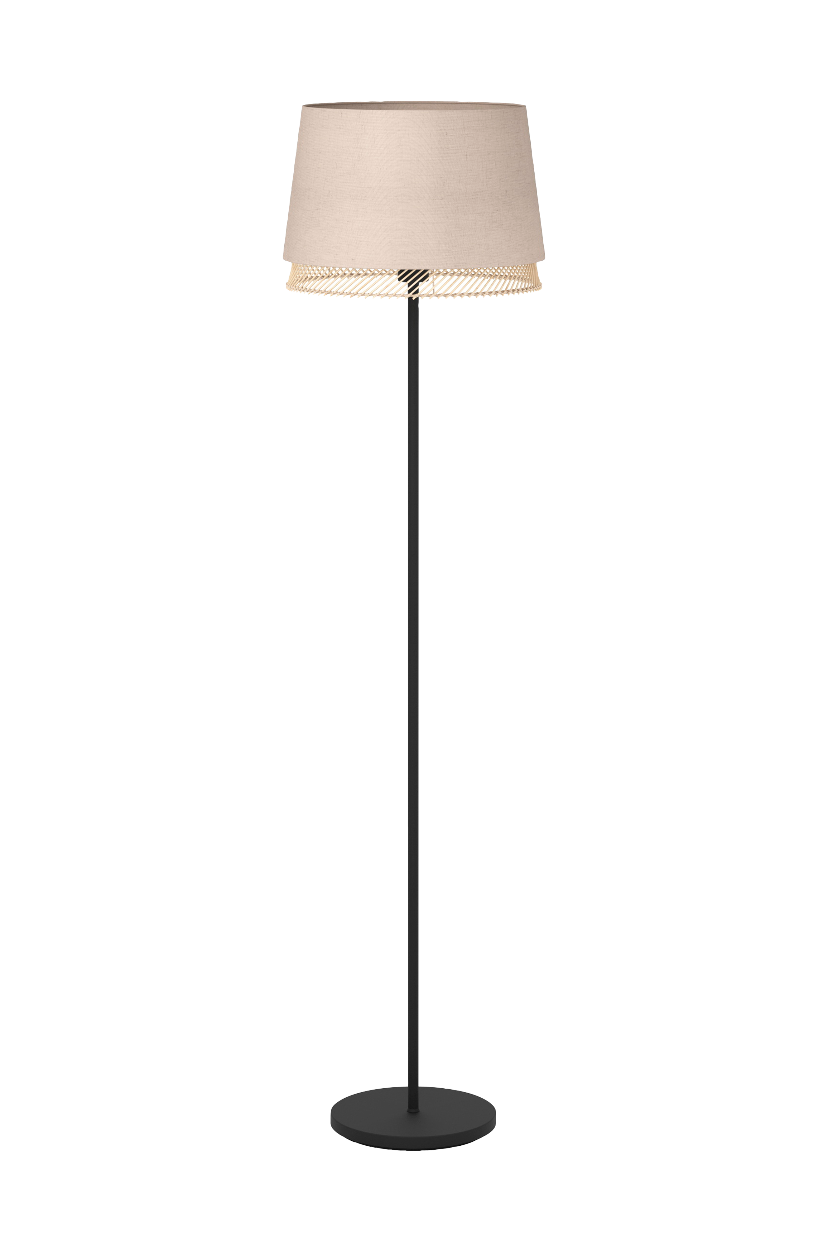 tabley -lattiavalaisimessa on kaksi päällekkäin asetettua pyöreää lampunvarjostinta ja musta teräsjalusta. Luonnonvärisen pellavaisen ulkovarjon ja bambusta valmistetun sisemmän sateenvarjon harmoninen yhdistelmä antaa valaisimelle luonnollisen ilmeen. Kun valaisin kytketään päälle, kankaan luonnollinen rakenne tulee näkyviin. Lattiavalaisin on helppo kytkeä päälle ja pois päältä linjassa olevan jalkakytkimen avulla. Lattiavalaisin sopii moderniin sisustukseen ja nykyisiin sisustustyyleihin, kuten luontotrendiin, ja se antaa viihtyisän tunnelmavalaistuksen makuuhuoneeseen, olohuoneeseen, ruokasaliin tai eteiseen. Valaisimessa on e27-lamppupidike ja se vaatii 1 x e27-lamppua, joka ei sisälly toimitukseen.