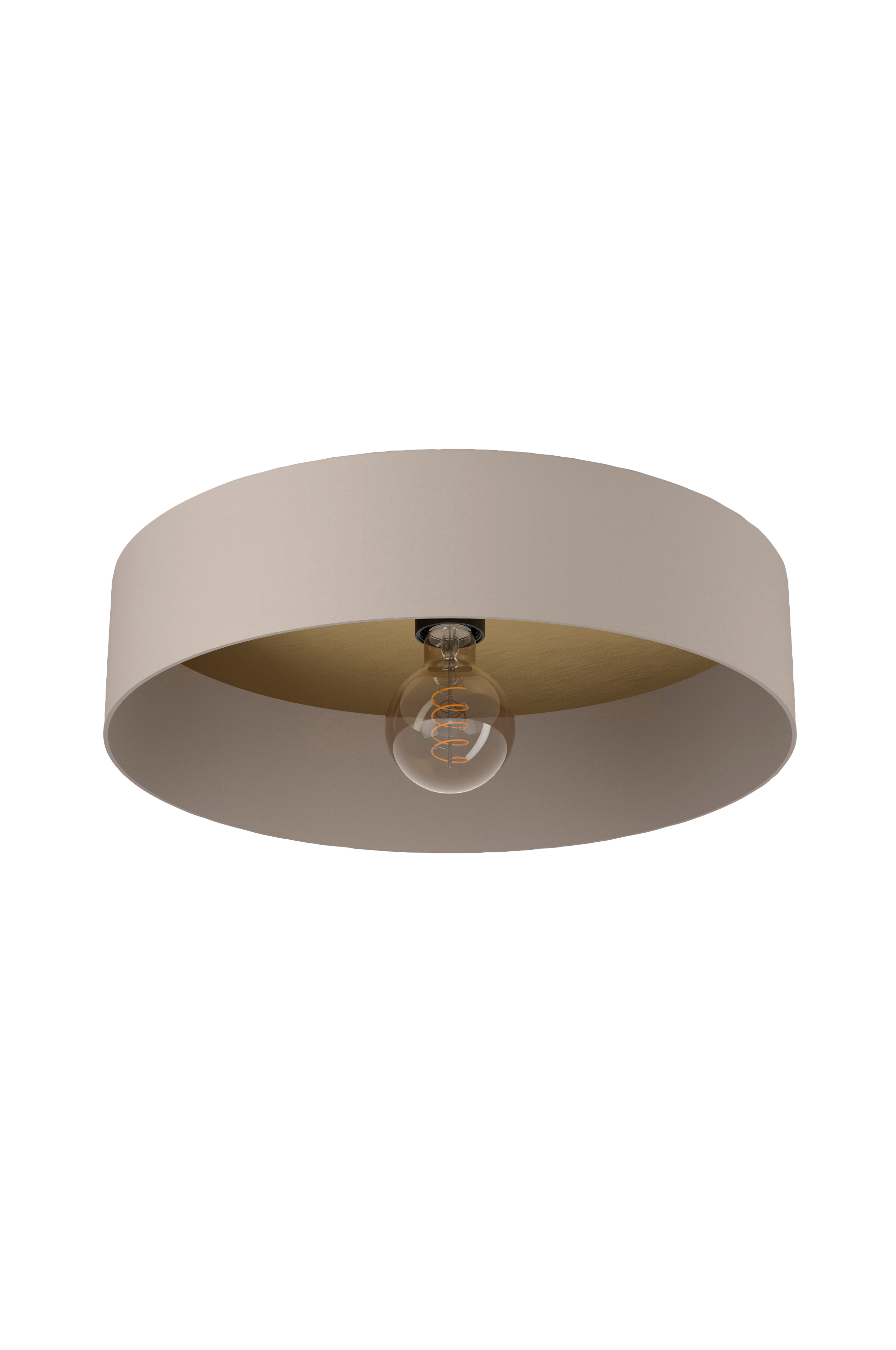 duaia kattovalaisimessa on umbranharmaa tai taupea metallirunko, jossa on pyöreä lampunvarjostin. Sisäpuolella on koristeellinen paneeli, joka voidaan asentaa kahtena variaationa, joko harjattua messinkiä tai tammi- tai pähkinäpuun näköisenä. Kattovalaisin sulautuu saumattomasti moderniin sisustukseen. Se tarjoaa alaspäin suuntautuvaa valaistusta mihin tahansa huoneeseen, olipa kyseessä keittiö, olohuone, makuuhuone tai eteinen. Tuotteessa on e27-lamppukannatin ja se vaatii 1 x e27-lamppua, joka ei sisälly toimitukseen.