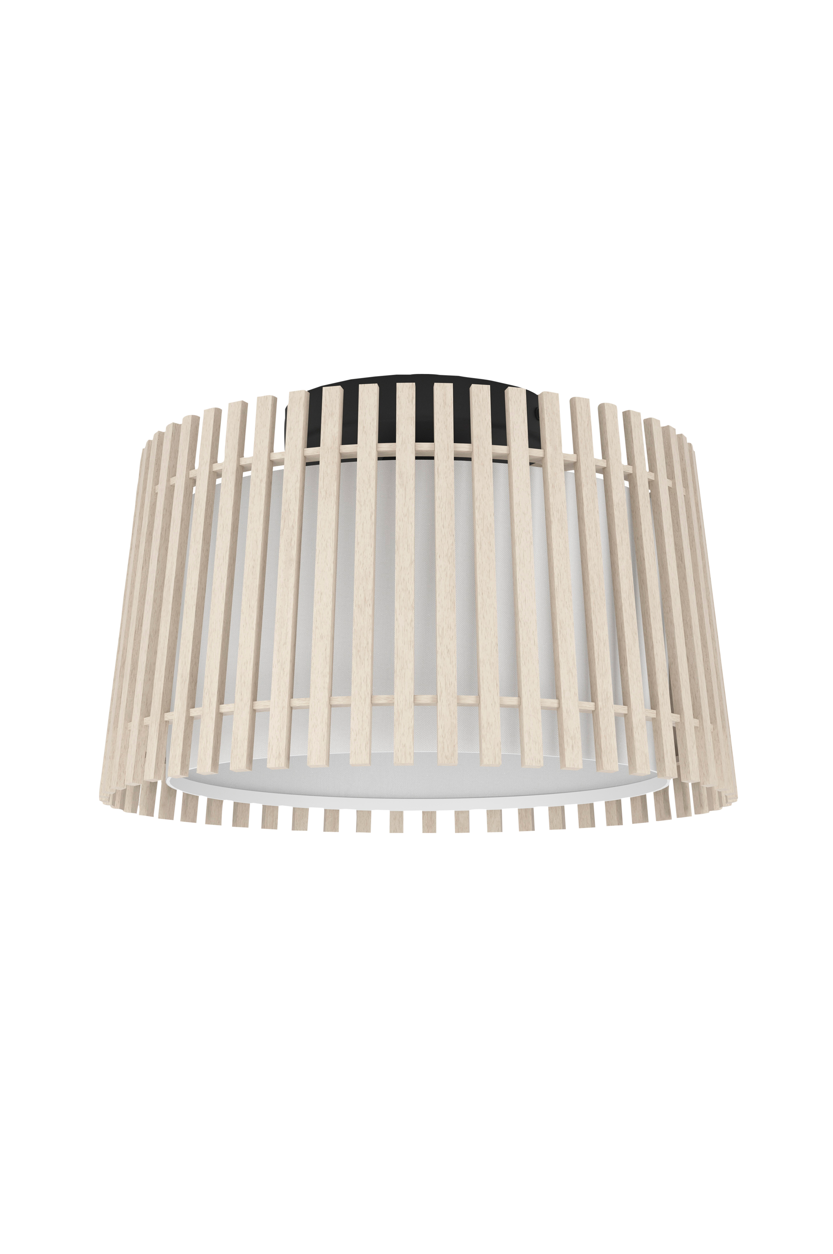 fattoria kattovalaisin koostuu puisesta lampunvarjostimesta, jonka sisällä on valkoinen tekstiilikuosi ja joka on kiinnitetty pyöreään mustaan metalliseen kattokiinnikkeeseen. Lampunvarjostin luo kiehtovan valon ja varjon näytelmän heti, kun valo sytytetään. Kattovalaisin sopii saumattomasti luonto- ja boho-trendiin ja luo rauhoittavan tunnelman luonnonmateriaaliensa ansiosta. Valaisin tarjoaa kodikasta valaistusta olohuoneeseen, makuuhuoneeseen, ruokasaliin tai eteiseen. Tuotteessa on e27-lamppukannatin ja se vaatii 1 x e27-lamppu, joka ei sisälly toimitukseen.