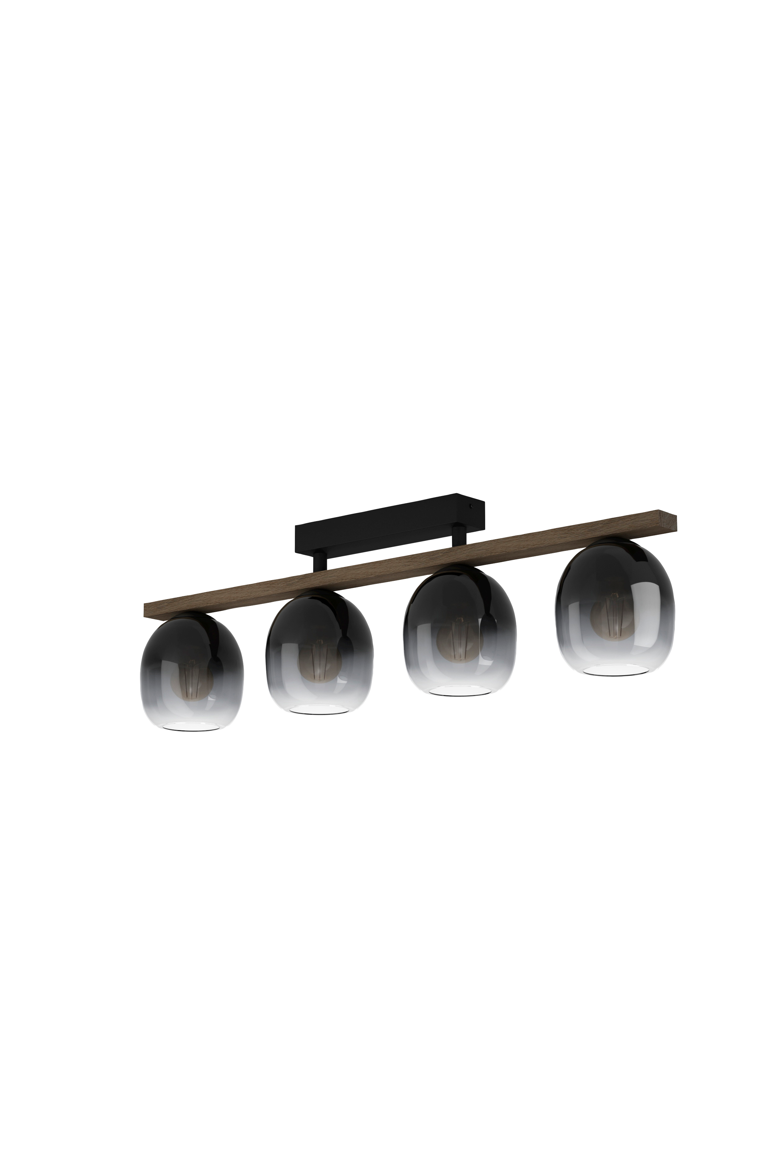 filago kattovalaisimessa on pähkinänruskea mäntypuupalkki yhdistettynä neljään pyöreään lasiseen lampunvarjostimeen, joiden väri vaihtuu mustasta läpinäkyväksi. Musta metallijalusta täydentää kauniisti kattovalaisimen tyylikästä ilmettä. Tuote sulautuu saumattomasti moderniin sisustukseen ja tarjoaa viihtyisän valaistuksen mihin tahansa tilaan, olipa kyseessä sitten keittiö, olohuone, makuuhuone tai eteinen. Tuotteessa on e27-lamppukannattimet ja se vaatii 4 x e27-lamppua, jotka eivät sisälly toimitukseen.