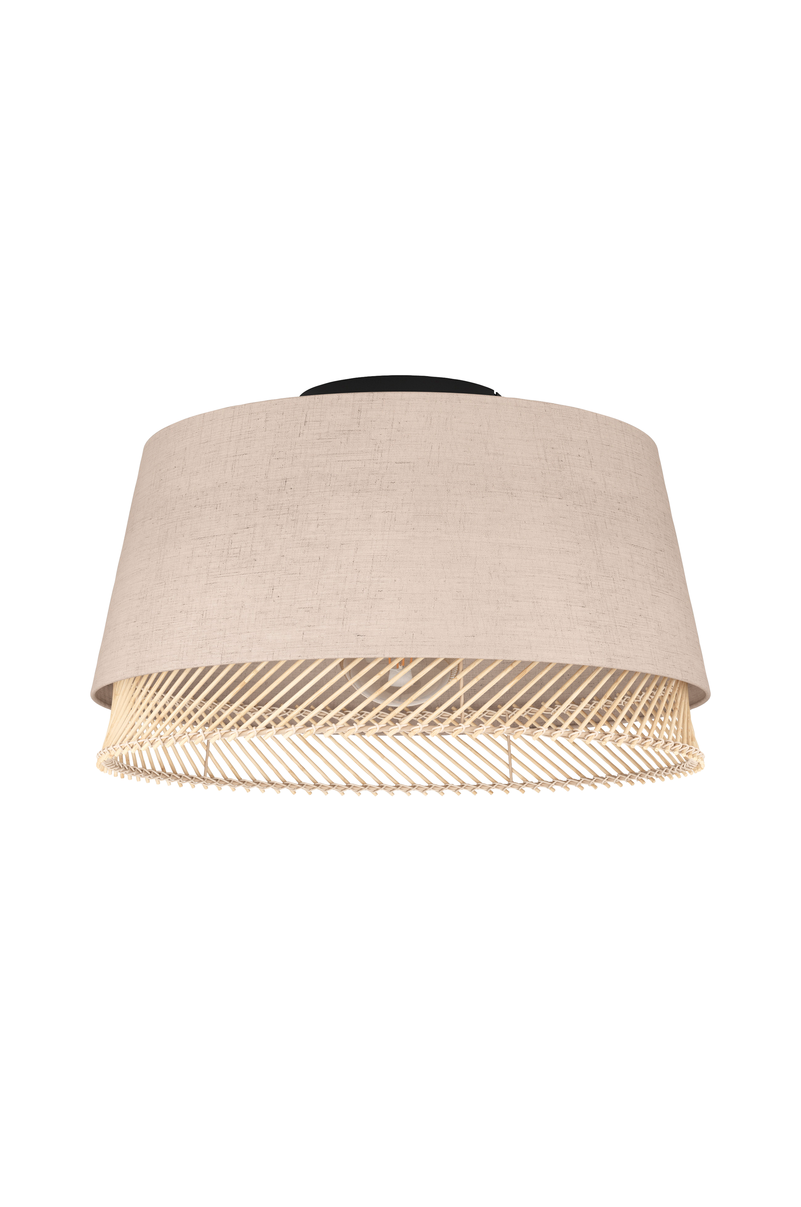 tabley kattovalaisimessa on kaksi pyöreää lampunvarjostinta päällekkäin. Luonnonväriseksi viimeistellyn ulomman pellavaisen lampunvarjostimen ja bambusta valmistetun sisemmän varjostimen harmoninen yhdistelmä antaa valaisimelle luonnollisen ilmeen. Kun valaisin kytketään päälle, kankaan luonnollinen rakenne tulee näkyviin. Kattovalaisin täydentää modernia sisustusta ja nykyisiä sisustustyylejä, kuten luontotrendiä, ja tarjoaa viihtyisän tunnelmavalaistuksen olohuoneeseen, eteiseen tai makuuhuoneeseen. Kattovalaisimessa on e27-lamppukannatin ja se vaatii 1 x e27-lamppua, joka ei sisälly toimitukseen.