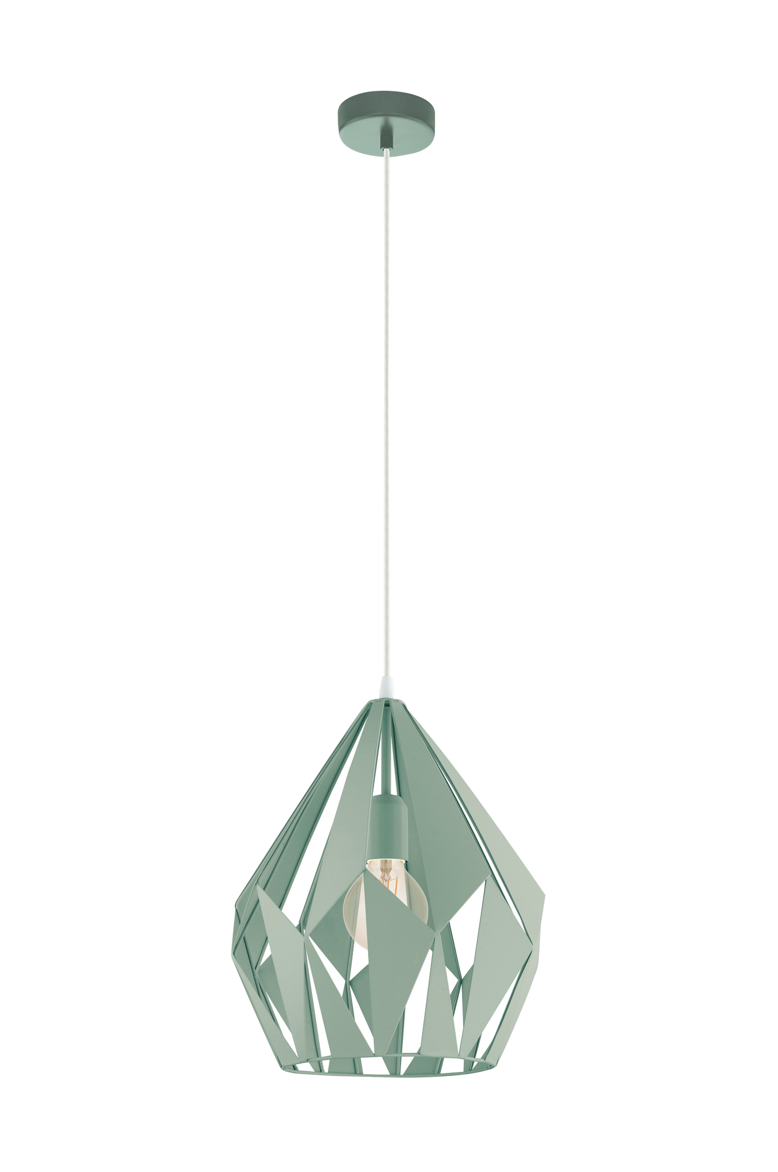 carlton-p-riippuvalaisimessa on timantinmuotoinen metallinen lampunvarjostin, jonka värit ovat aprikoosi, minttu tai valkoinen/kulta ja jossa on valkoinen tekstiilikaapeli. Kun riippuvalaisin on päällä, tämä tuote luo kiehtovan valon ja varjon leikin metallivarjostimen geometristen aukkojen kautta. Aprikoosinvärinen riippuvalaisin täydentää modernia sisustusta ja sopii hyvin mihin tahansa tilaan, olipa kyseessä sitten olohuone tai ruokapöydän yläpuolella oleva valaisin. Tuotteeseen tarvitaan 1 e27-lamppu, joka ei sisälly toimitukseen.