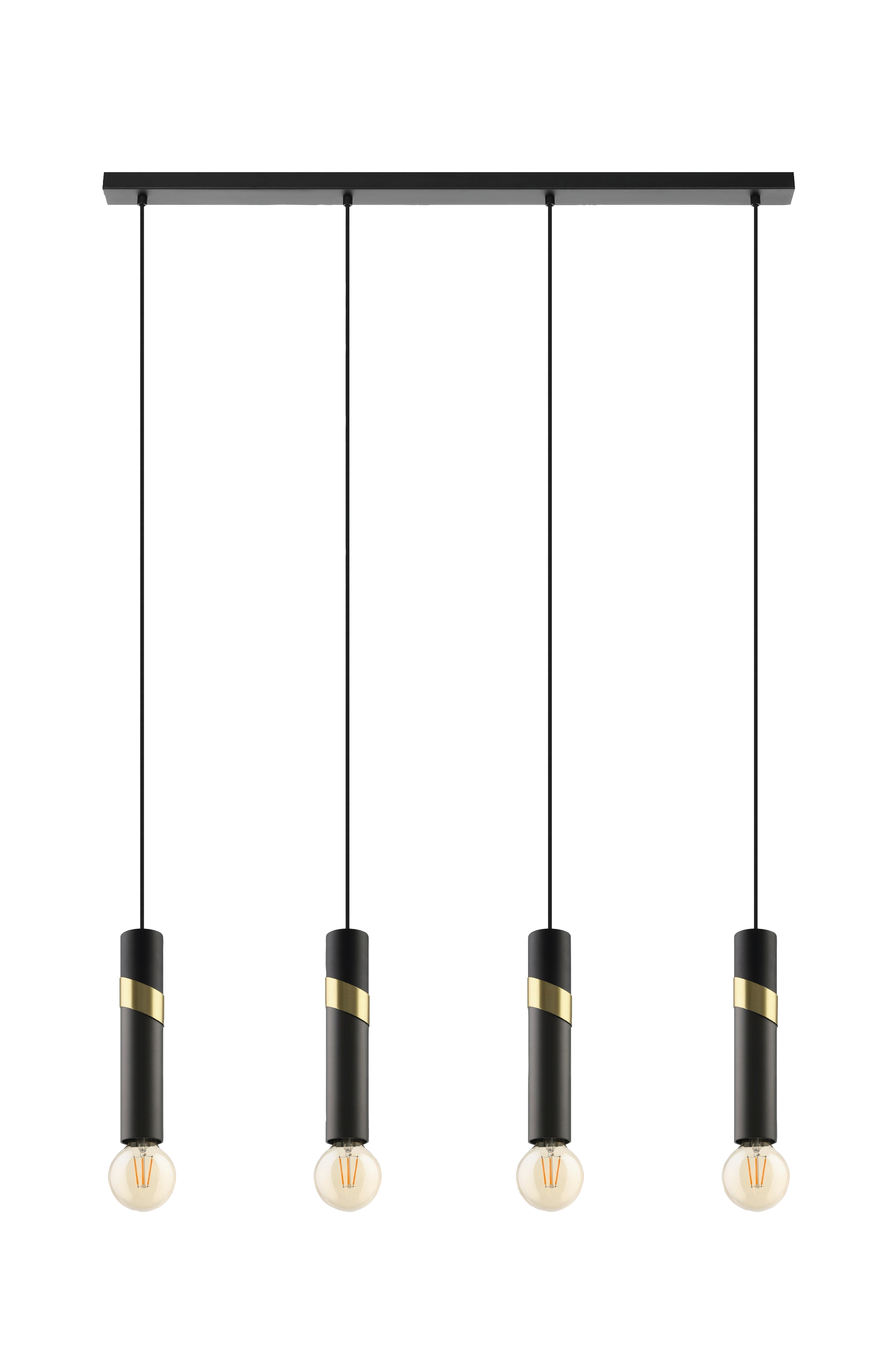 Riippuvalaisimessa cedral on neljä lieriömäistä lampunpidintä, jotka riippuvat mustasta metallikatoksesta laadukkailla mustilla tekstiilikaapeleilla. Jokaisessa mustassa ja harmaassa päässä on harjattua messinkiä oleva koristerengas, ja se on yhdistetty paljaaseen lamppumalliin. Harmonisen väriyhdistelmänsä ansiosta minimalistinen valaisin sopii kauniisti moderniin sisustukseen ja luo viihtyisän valaistuksen olohuoneeseen tai ruokasalin pitkän pöydän yläpuolelle. Tuote vaatii 4 x e27-lamppua, jotka eivät sisälly toimitukseen.