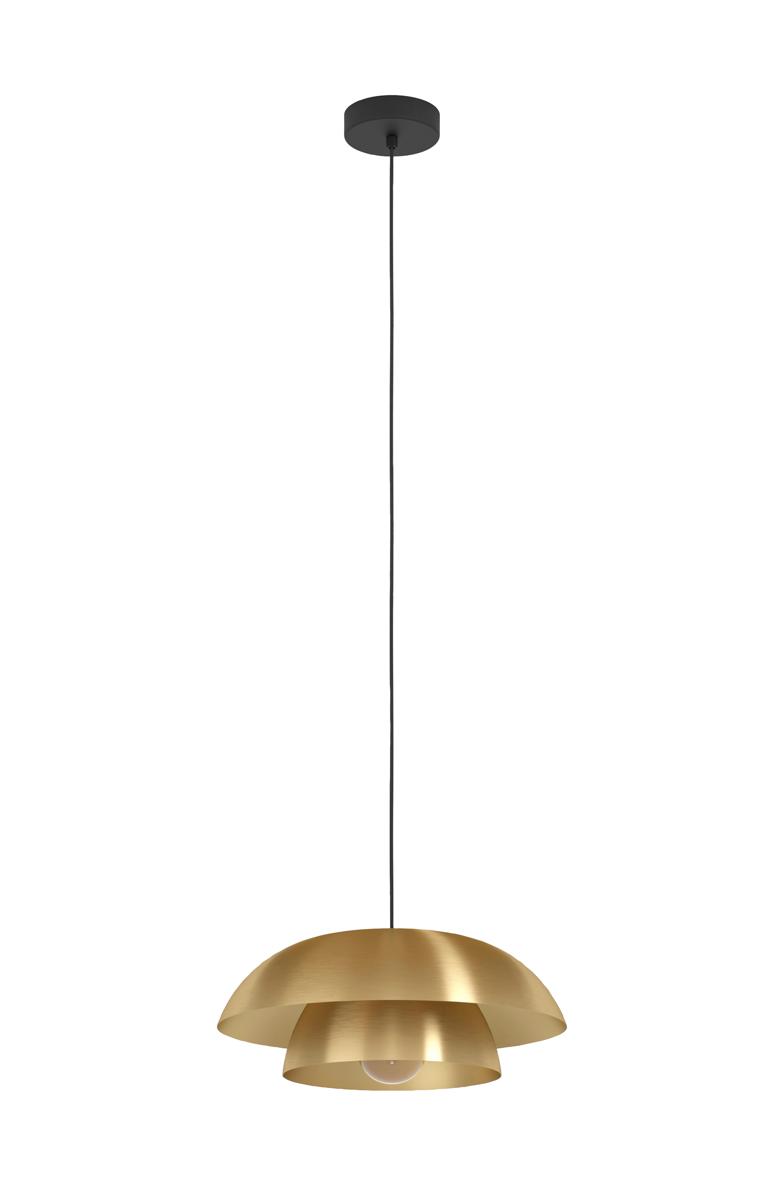 Yksittäinen riippuvalaisin cenciara on valmistettu messingistä, ja siinä on kullanvärinen sisäpinta, jossa on kaksi pyöreää metallista lampunvarjostinta, jotka on ripustettu mustaan metallikatokseen. Riippuvalaisimen tyylikkään ulkonäön ansiosta se sopii täydellisesti moderniin sisustukseen ja on upea keskipiste olohuoneeseen tai ruokapöydän yläpuolelle. Tuotteessa on e27-lamppukannatin ja se vaatii 1 x e27-lamppua, joka ei sisälly toimitukseen.
