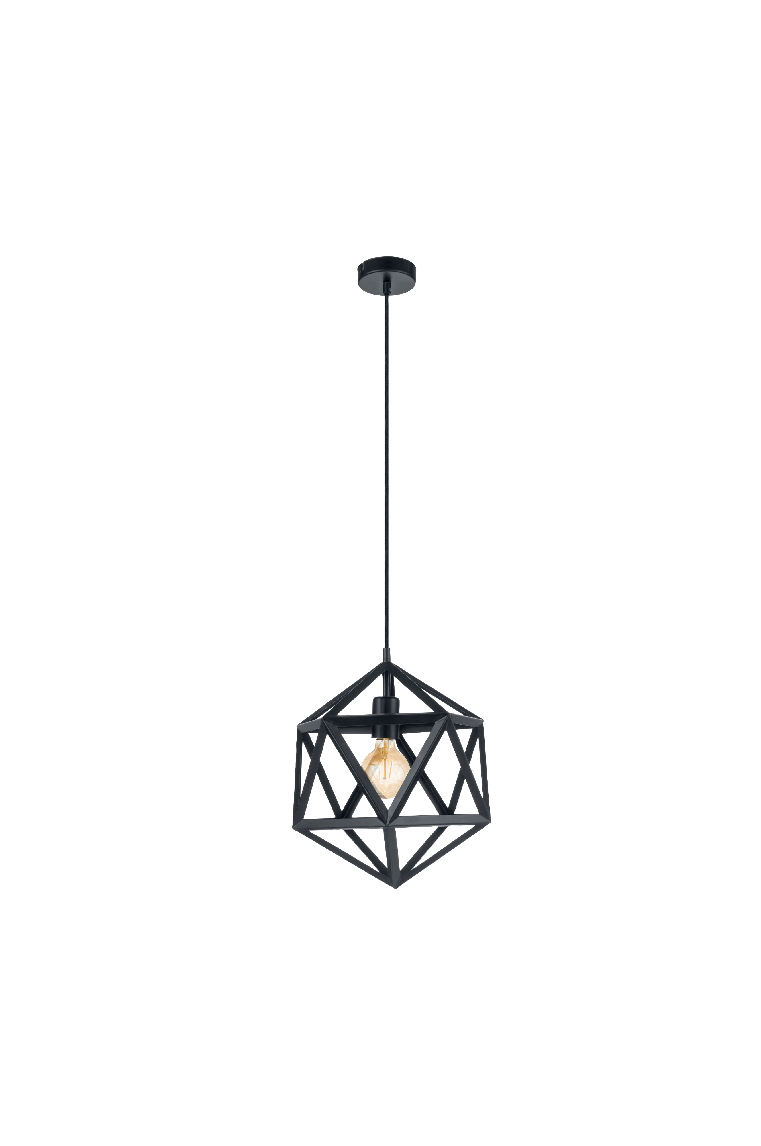 Riippuvalaisimessa embleton on musta timantinmuotoinen metallinen lampunvarjostin ja avoin lampun kanta. Lampunvarjostimen metallirunko luo kiehtovan valon ja varjon leikin, kun valo on päällä. Riippuvalaisin sulautuu saumattomasti trendikkään teollisen tyylin sisustukseen. Se tarjoaa omaleimaista valaistusta kotiisi, olipa kyseessä sitten olohuone tai ruokasalin pöydän yläpuolella oleva valaisin. Kuvassa oleva hehkulamppu ei sisälly toimitukseen. Tuotteessa on e27-lampunpidin ja se vaatii 1 e27-lamppua.