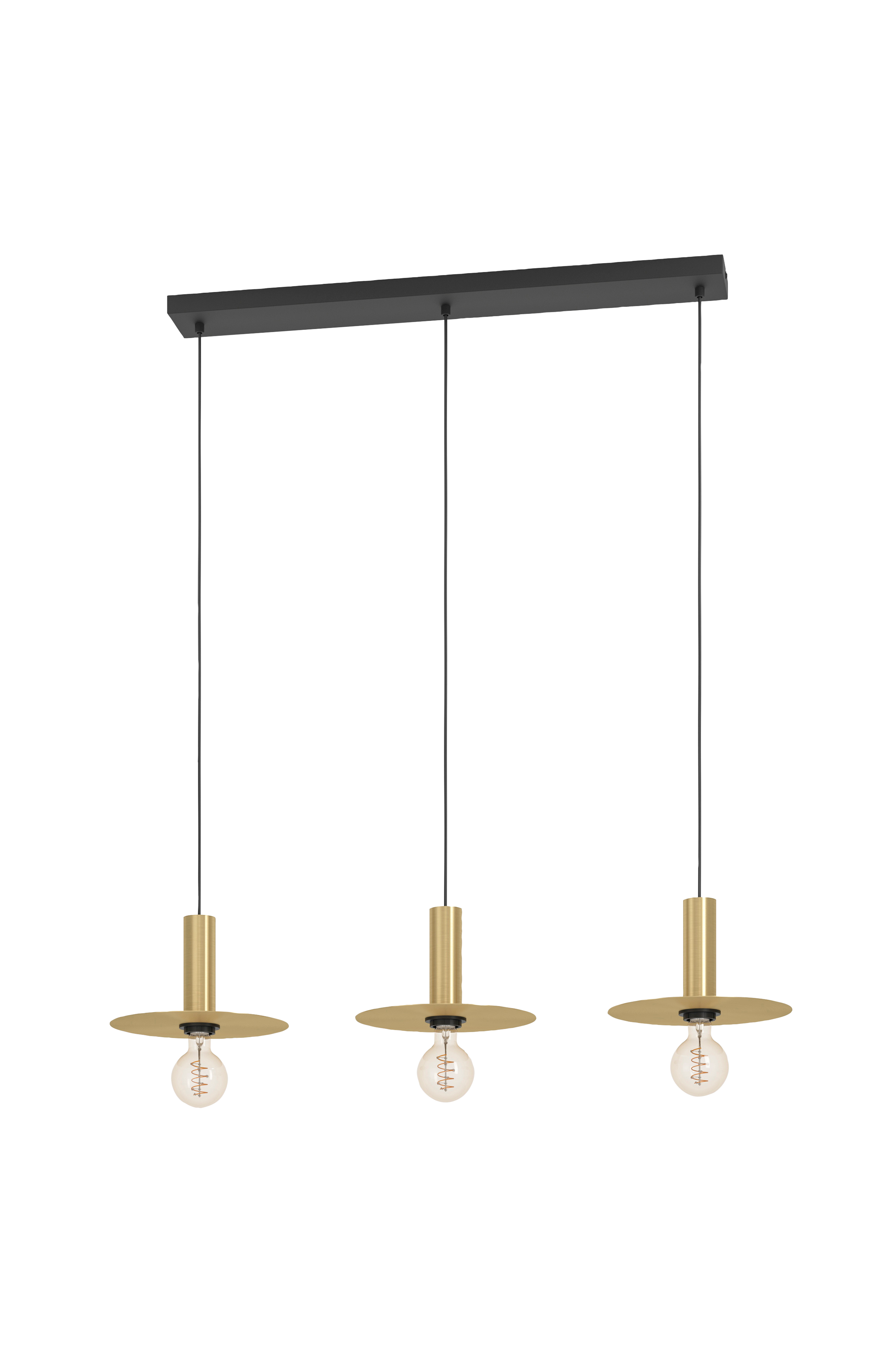 Riippuvalaisimessa escandell on kolme pyöreää harjattua messinkiä sisältävää metallipöytää, jotka on sijoitettu lampunpitimien yläpuolelle ja joissa on näkyvissä alttiina olevia hehkulamppuelementtejä, jotka kaikki on ripustettu pitkänomaisen mustan katoksen varaan. Riippuvalaisin sopii tyylikkäästi minimalistisiin asuintiloihin "uuden retron" sisustustyyliin ja tarjoaa modernia valaistusta huoneeseesi, olipa kyseessä sitten olohuone tai ruokapöydän yläpuolella. Pariksi sopivat meripihkanväriset spiraalilamput viimeistelevät ilmeen. Tuotteessa on e27-lamppukannattimet ja se vaatii 3 x e27-lamppua, jotka eivät sisälly toimitukseen.