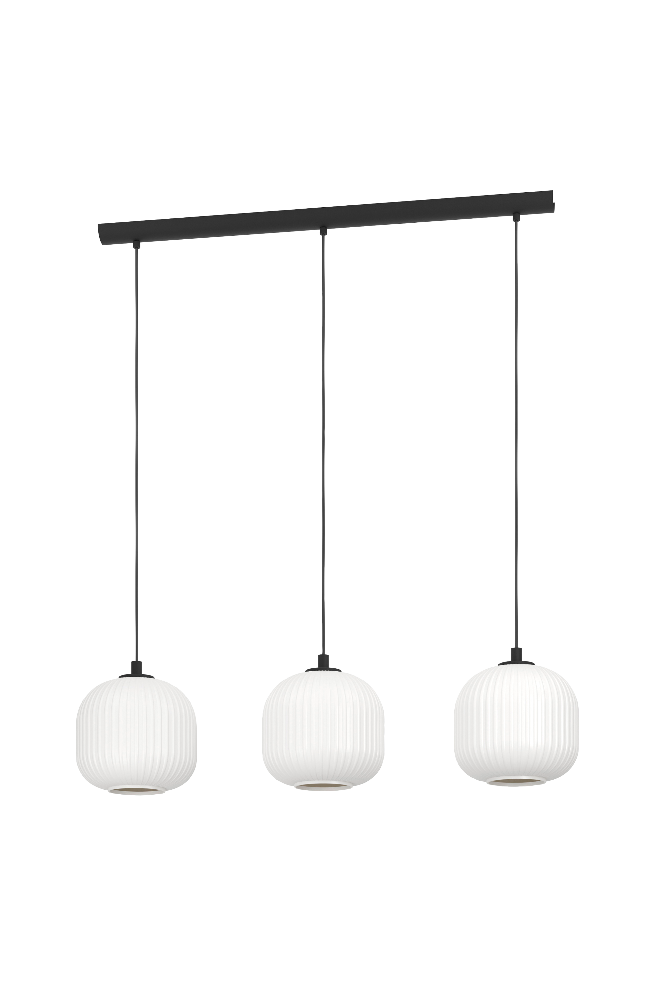 Riippuvalaisimessa mantunalle on kolme pyöreää lampunvarjostinta, jotka on valmistettu valkoisesta uurretusta lasista, ja musta metallinen kiinnike. Valaisin sopii saumattomasti moderniin ja skandinaaviseen sisustukseen ja tarjoaa tyylikkään valaistuksen mihin tahansa tilaan, olipa kyseessä sitten keittiö, olohuone tai ruokapöydän yläpuolella oleva valaisin. Hehkulamput eivät sisälly toimitukseen. Tuotteessa on e27-lamppukannattimet ja se vaatii e27-lamppuja.