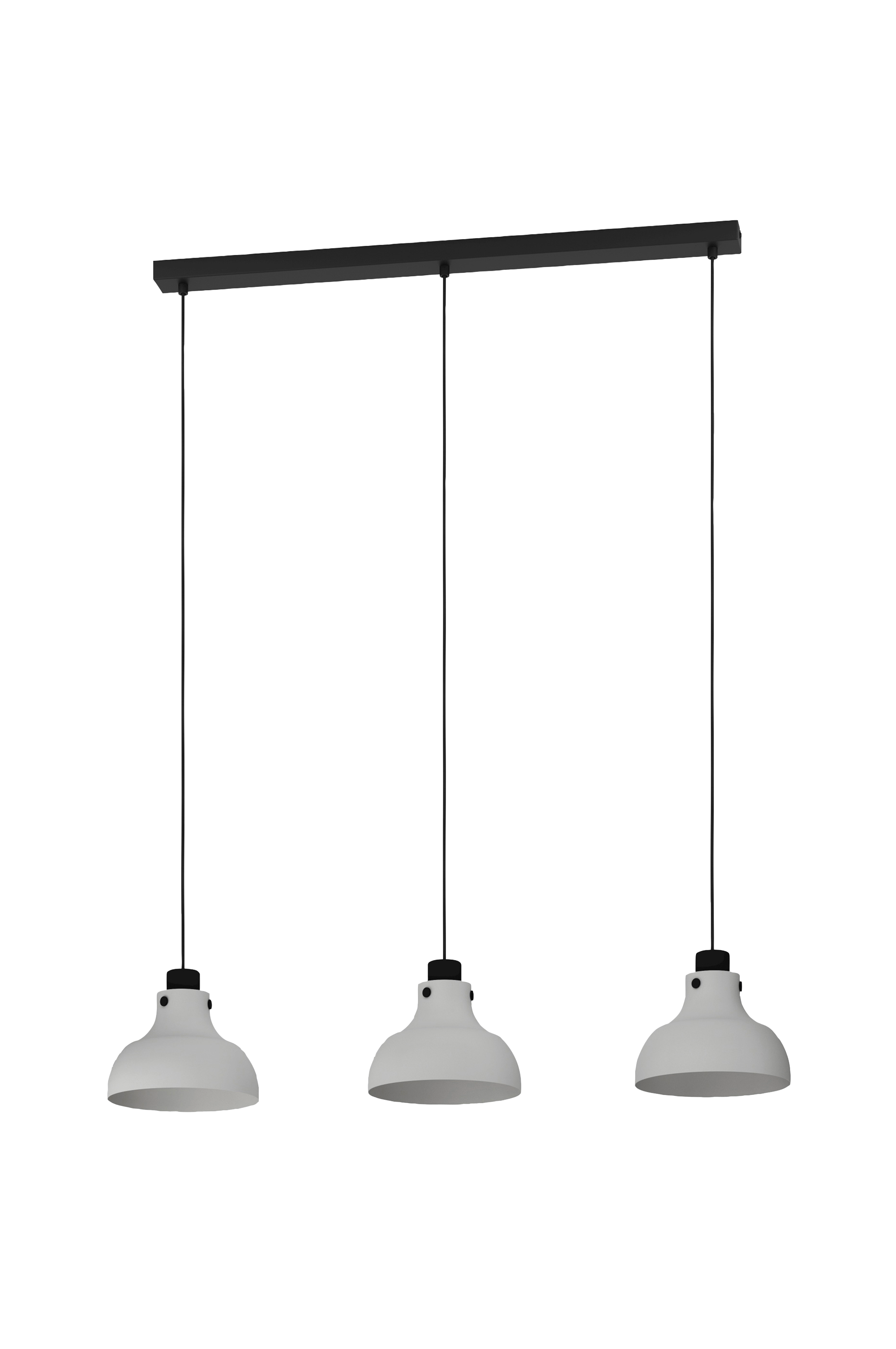 Riippuvalaisimessa matlock on kolme kartiomaista metallista lampunvarjostinta, joissa on vaaleanharmaa viimeistely ja mustat teolliset korostukset. Tuotteeseen kuuluu pitkä musta metallikatos, jossa on mustat tekstiilikaapelit. Riippuvalaisimessa on tyylikäs teollinen muotoilu, ja se tarjoaa modernia valaistusta tilaan, olipa se sitten olohuoneessa tai ruokasalin pöydän yläpuolella. Hehkulamput eivät sisälly toimitukseen. Tuotteessa on e27-lamppukannattimet ja se vaatii e27-lamppuja.