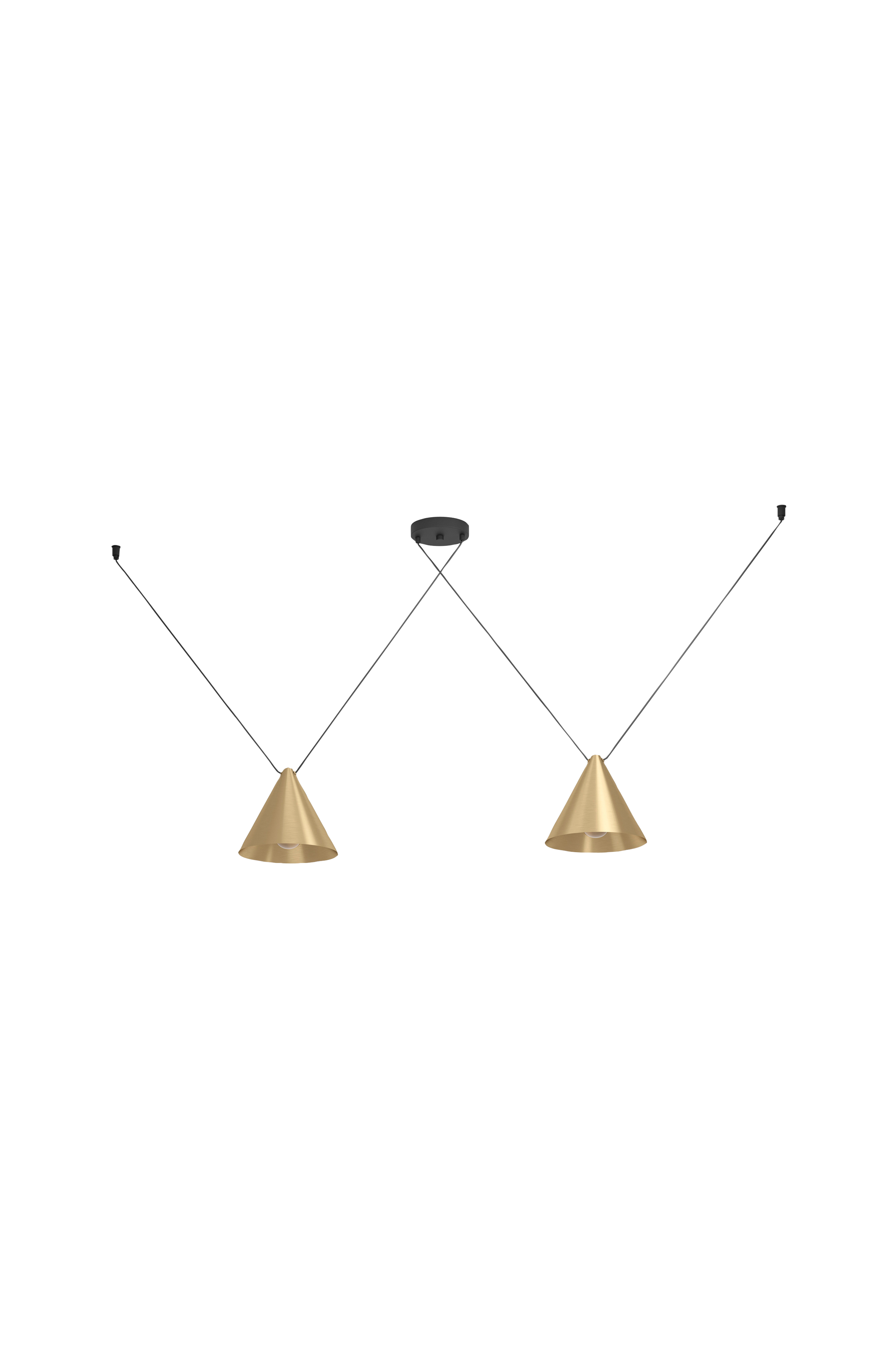narices 1 -riippuvalaisimessa on kaksi kartiomaista lampunvarjostinta, jotka on valmistettu messinkisestä harjattua metallia ja joiden sisäpuoli on kullanvärinen. Lampunvarjostimet on ripustettu mustilla vaijereilla samanvärisestä metallikatoksesta. Kahden lisäripustusvaihtoehdon ansiosta riipusvalaisin voidaan asentaa erikseen kattoon. Valaisimen suoraviivainen, puristinen muotoilu retro-chic-tyyliin tarjoaa tyylikästä valaistusta olohuoneeseen tai ruokapöydän yläpuolelle. Tuotteessa on kaksi e27-lamppupidikettä ja se vaatii 2 x e27-lamppua, jotka eivät sisälly toimitukseen.