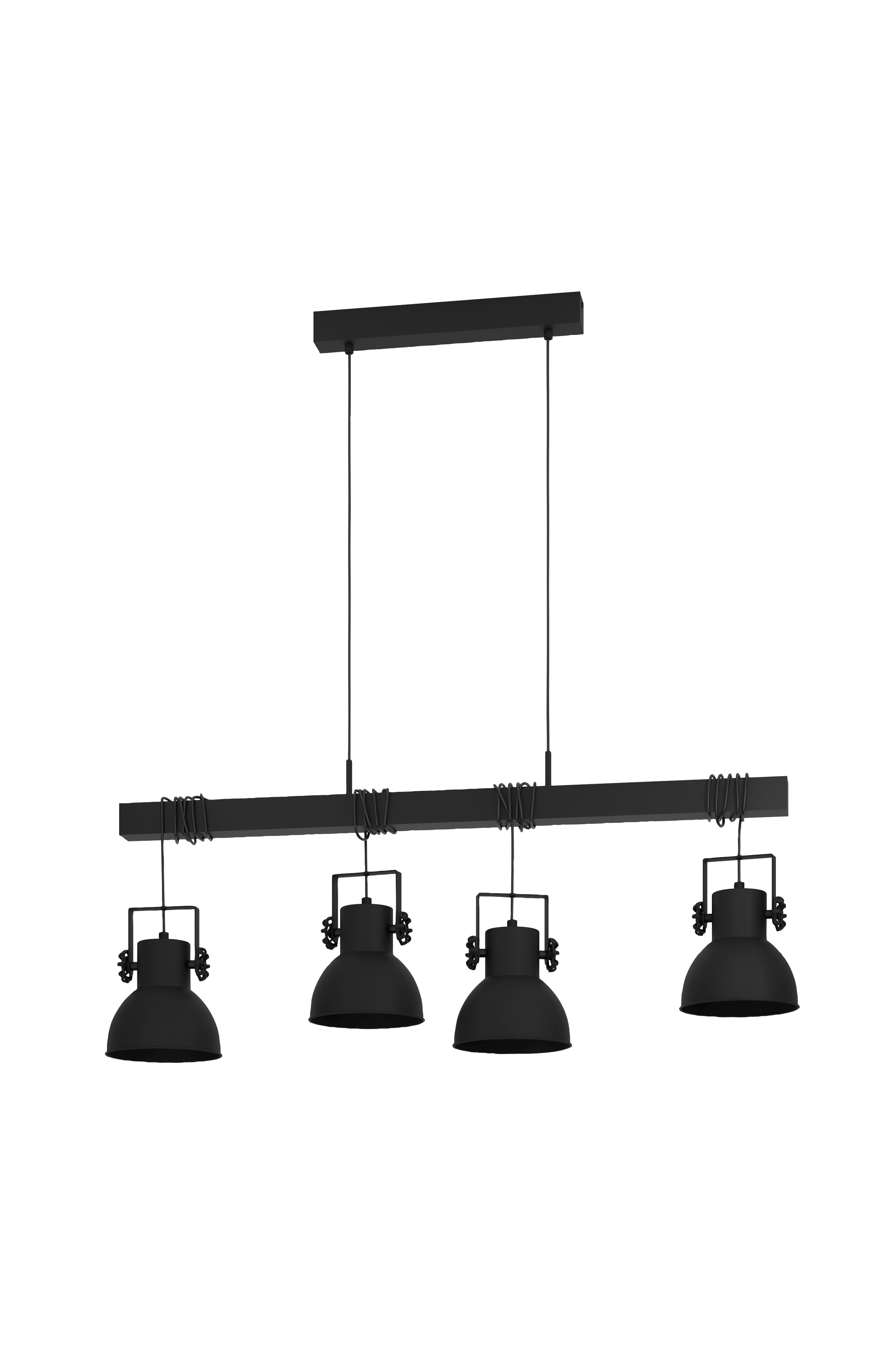 Riippuvalaisimessa shirebrook on musta puupalkki ja neljä mustaa metallista lampunvarjostinta. Mustat kiinnitysruuvit lampunvarjojen sivuilla korostavat maalaismaista muotoilua. Lampunvarjostimet voi ripustaa eri korkeuksille yksinkertaisesti kelaamalla tai purkamalla köydet. Mäntypuun ja metallin kiehtovan yhdistelmän ansiosta riippuvalaisin sulautuu saumattomasti teollisen tyylin sisustukseen ja luo omaleimaisen, huomiota herättävän elementin olohuoneeseen tai ruokasalin pitkän pöydän yläpuolelle. Hehkulamput eivät sisälly toimitukseen. Tuotteessa on e27-lamppukannattimet ja se vaatii e27-lamppuja.