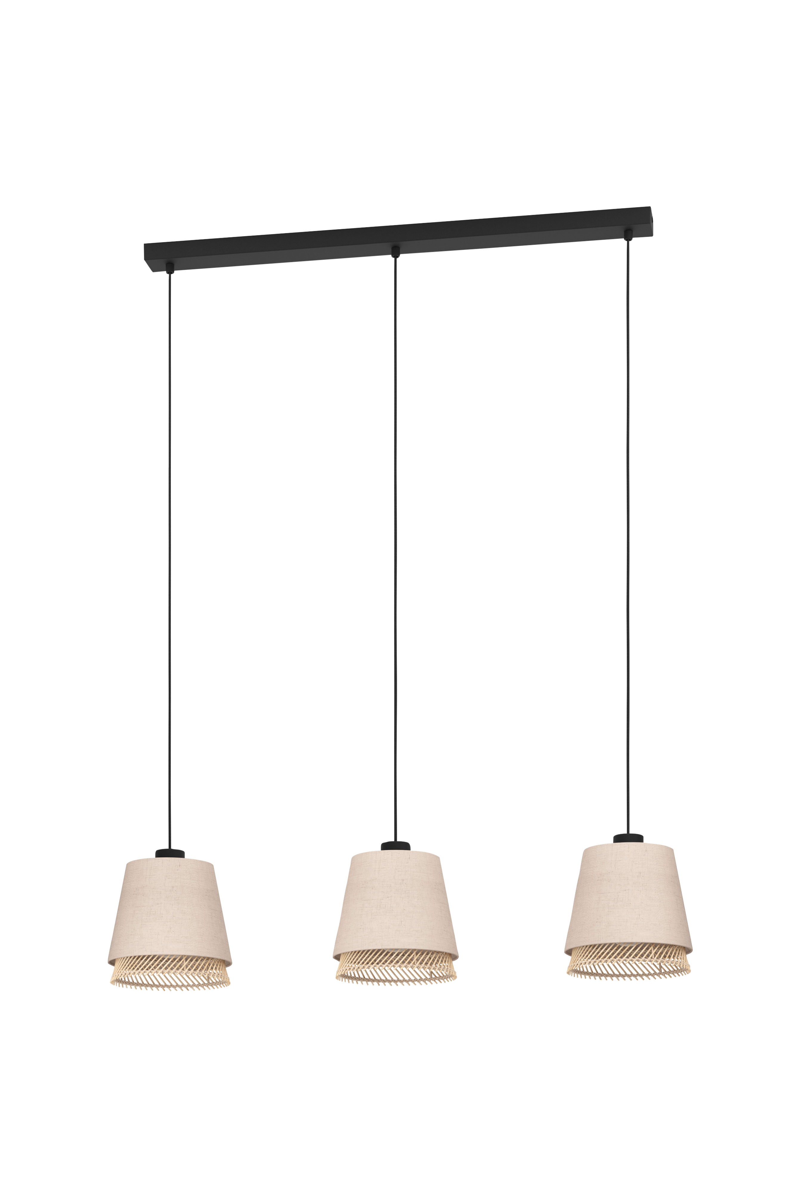 Yksittäisessä riippuvalaisimessa tabley on kolme lampunvarjostinta, joista kukin koostuu kahdesta päällekkäin asetetusta pyöreästä lampunvarjostimesta. Luonnonväristen ulkopuolisten pellavaverhojen ja bambusta valmistettujen sisempien varjostimien harmoninen yhdistelmä antaa riippuvalaisimelle luonnollisen ilmeen. Kun valaisin kytketään päälle, kankaan luonnollinen rakenne tulee näkyviin. Riippuvalaisin sopii moderniin sisustukseen ja nykyisiin sisustustyyleihin, kuten luontotrendiin, ja se antaa viihtyisän tunnelmavalon olohuoneeseen tai pitkän ruokapöydän yläpuolelle. Valaisimessa on e27-lamppupidikkeet ja se vaatii 3 x e27-lamppua, jotka eivät sisälly toimitukseen.
