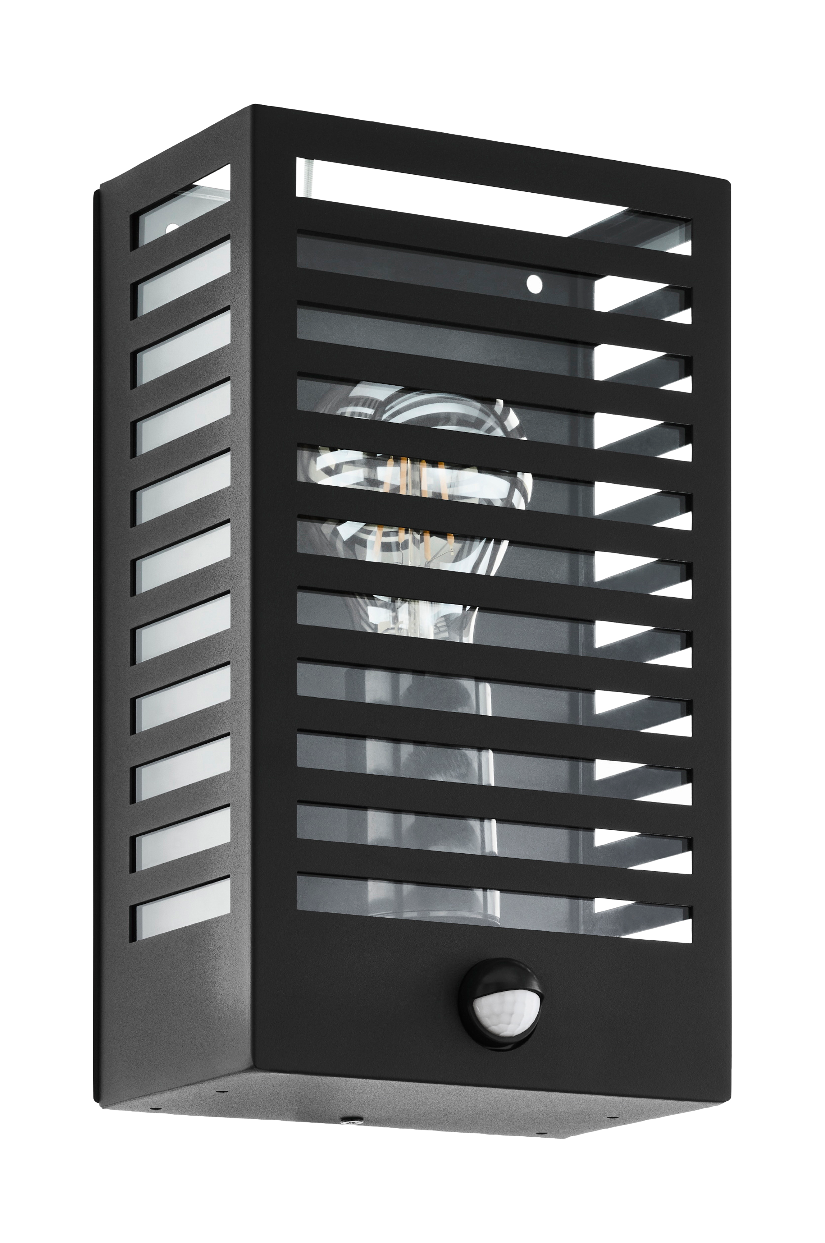 alamonte 3 -ulkoseinävalaisimessa on kuutiomainen metallirunko, jossa on kirkkaat lasipaneelit. Raidallinen muotoilu täydentää tyylikkäästi valaisimen omaleimaista ilmettä ja luo samalla miellyttävää tunnelmaa ja antaa epäsuoraa valoa. Seinävalo on varustettu myös liiketunnistimella, ja se syttyy automaattisesti valaisten huonosti näkyviä alueita ja pelottaen ei-toivottuja vierailijoita. Integroitu hämärätunnistin mittaa ympäristön valoisuuden, joten valo syttyy vain tarvittaessa. Tämä ulkovalaisin, jossa on ip44-suojaus roiskevettä vastaan, soveltuu ulkokäyttöön ja sopii erinomaisesti moderniin ulkotilaan. Tuote vaatii 1 e27-lamppu, joka ei sisälly toimitukseen.