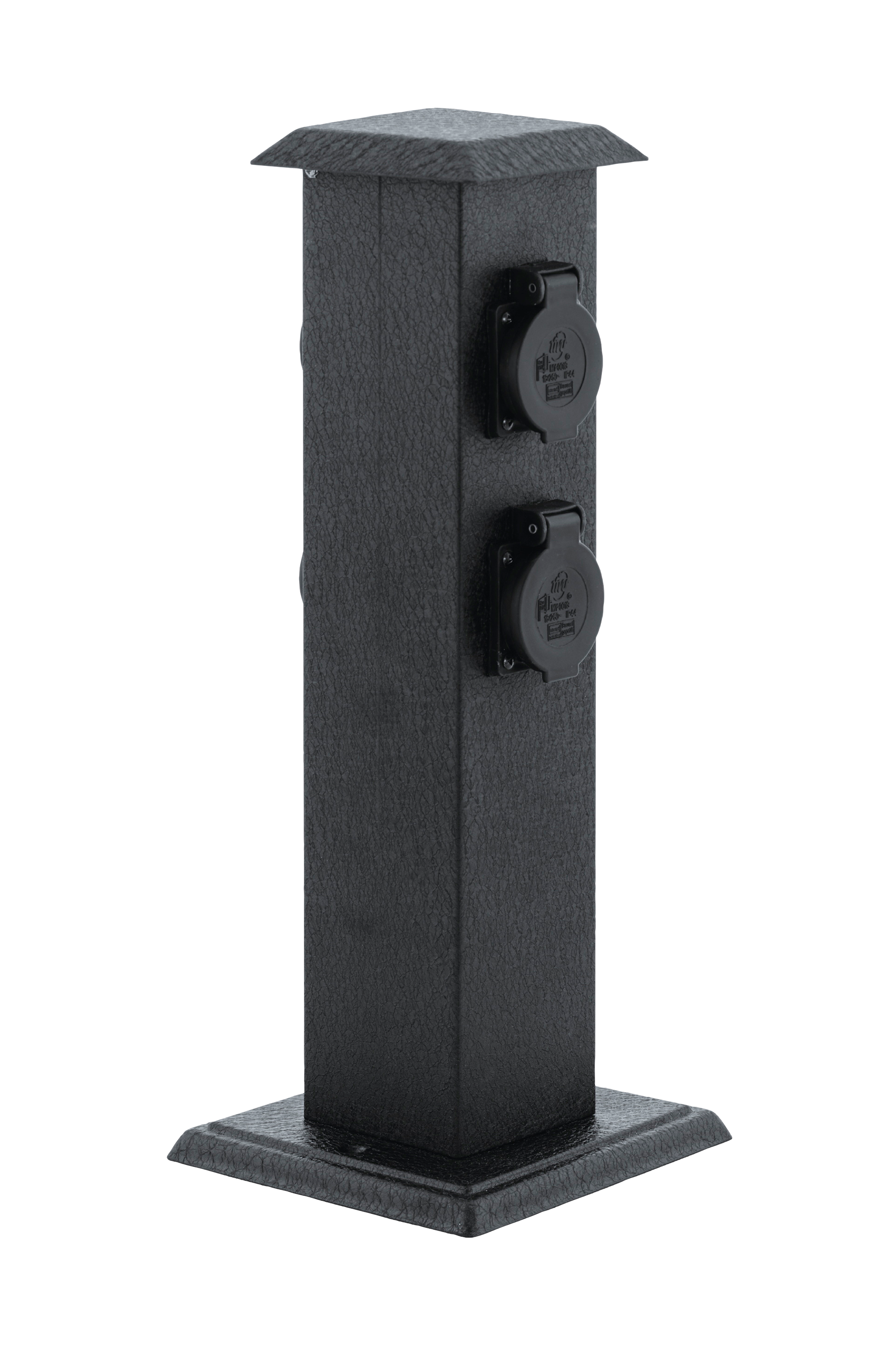 Puutarhapistorasiassa on 40 cm korkea metallirunko, ja se tarjoaa yksinkertaisen ja käytännöllisen ratkaisun virran jakamiseen ulkotiloihin. Pistorasiapylväässä on neljä muovista pistorasiaa, joissa on saranoidut kannet, ja se soveltuu ulkokäyttöön, koska se on suojattu ip44-suojauksella roiskevettä vastaan. Ulkona käytettävä pistorasia voidaan asentaa ruuveilla moniin paikkoihin, myös terassille. Halusitpa sitten kytkeä keijuvalot, ruohonleikkurin tai sähkögrillin, tämän tuotteen avulla voit käyttää sähkölaitteita puutarhassa.