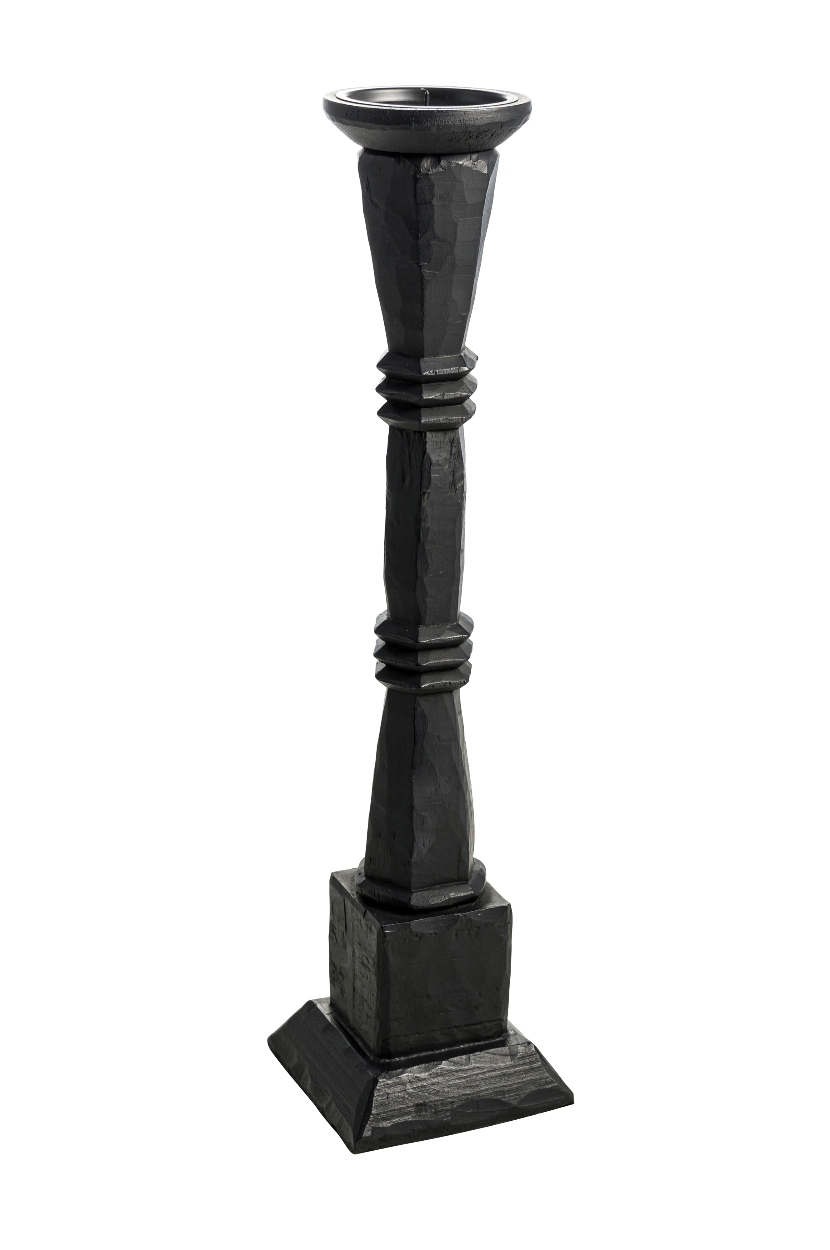 Kynttilänjalka mustaa mangopuuta, korkeus 53 cm. Jokainen käsintehty esine on yksilöllinen. Puhdistetaan kuivalla liinalla.
