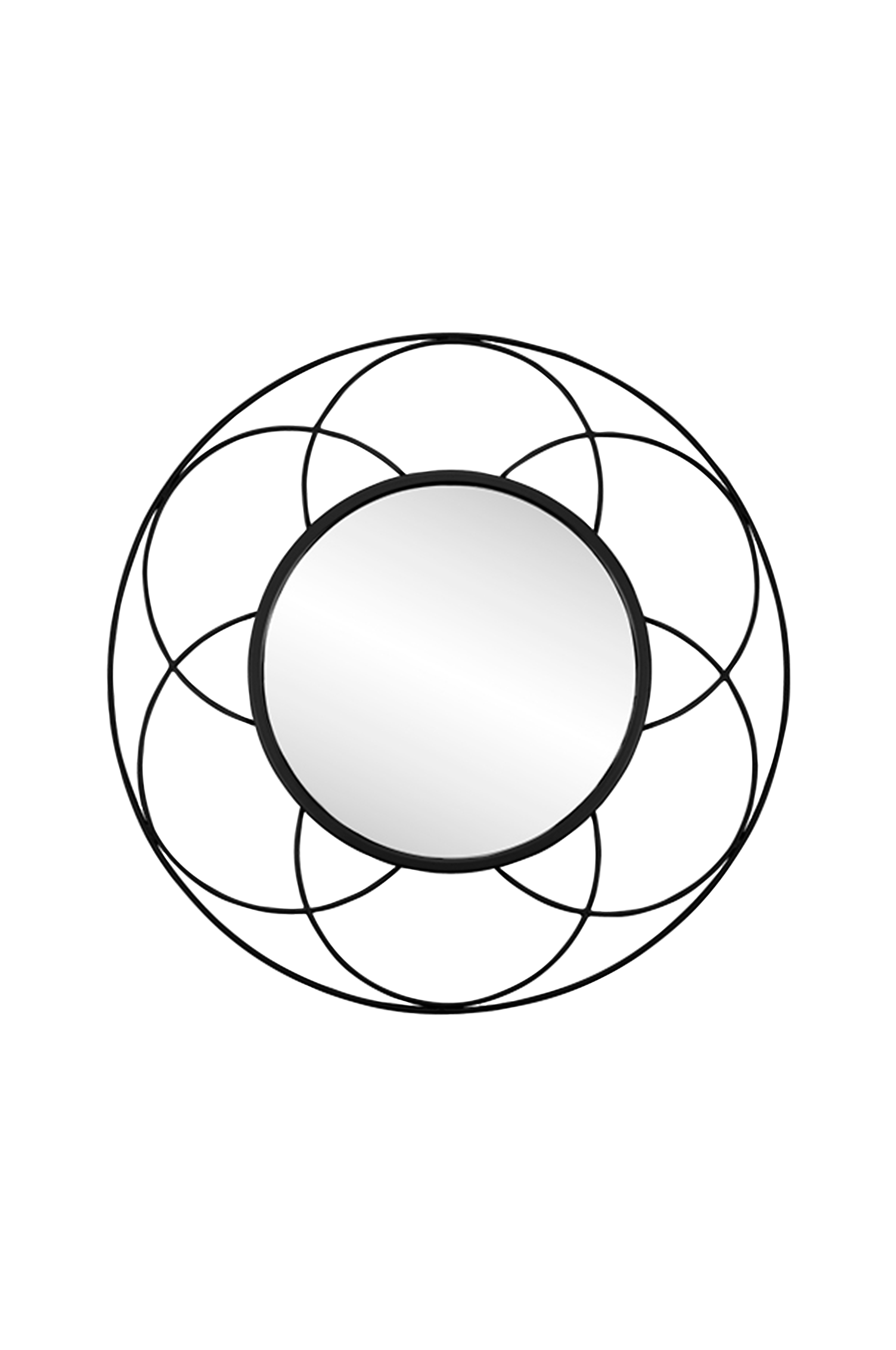 Koristeellinen rautainen peili, halkaisija 70 cm. Puhdistetaan kuivalla liinalla.