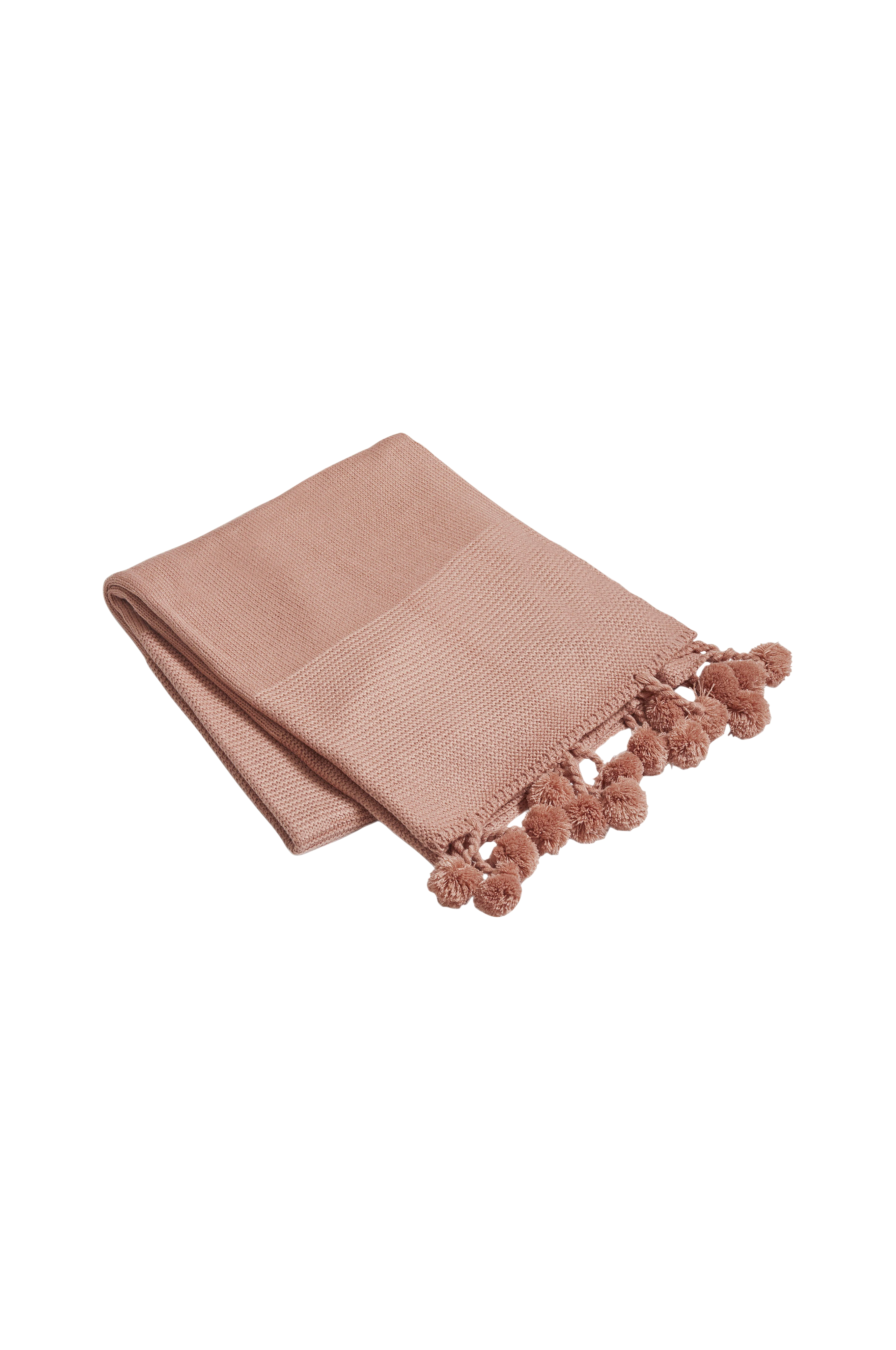 Neulottu torkkupeitto, jossa koristepallot lyhyillä sivuilla, P150xL130 cm. 100% akryyliä, käsinpesu.