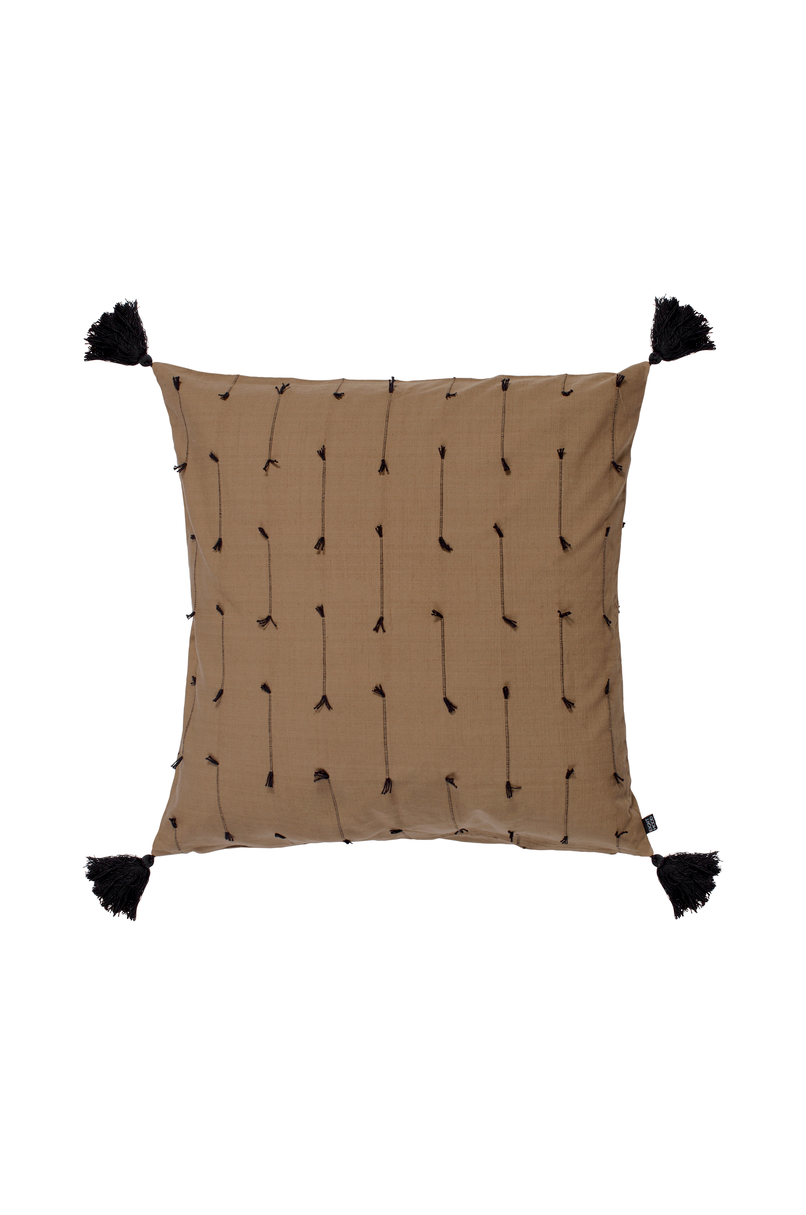 Tyynynpäällinen, jossa ommellut yksityiskohdat, koristetupsut kulmissa ja vetoketju alareunassa. Mitat 60x60 cm. Tilaa sisätyyny erikseen. 100% puuvillaa. Hienopesu 30 asteessa.