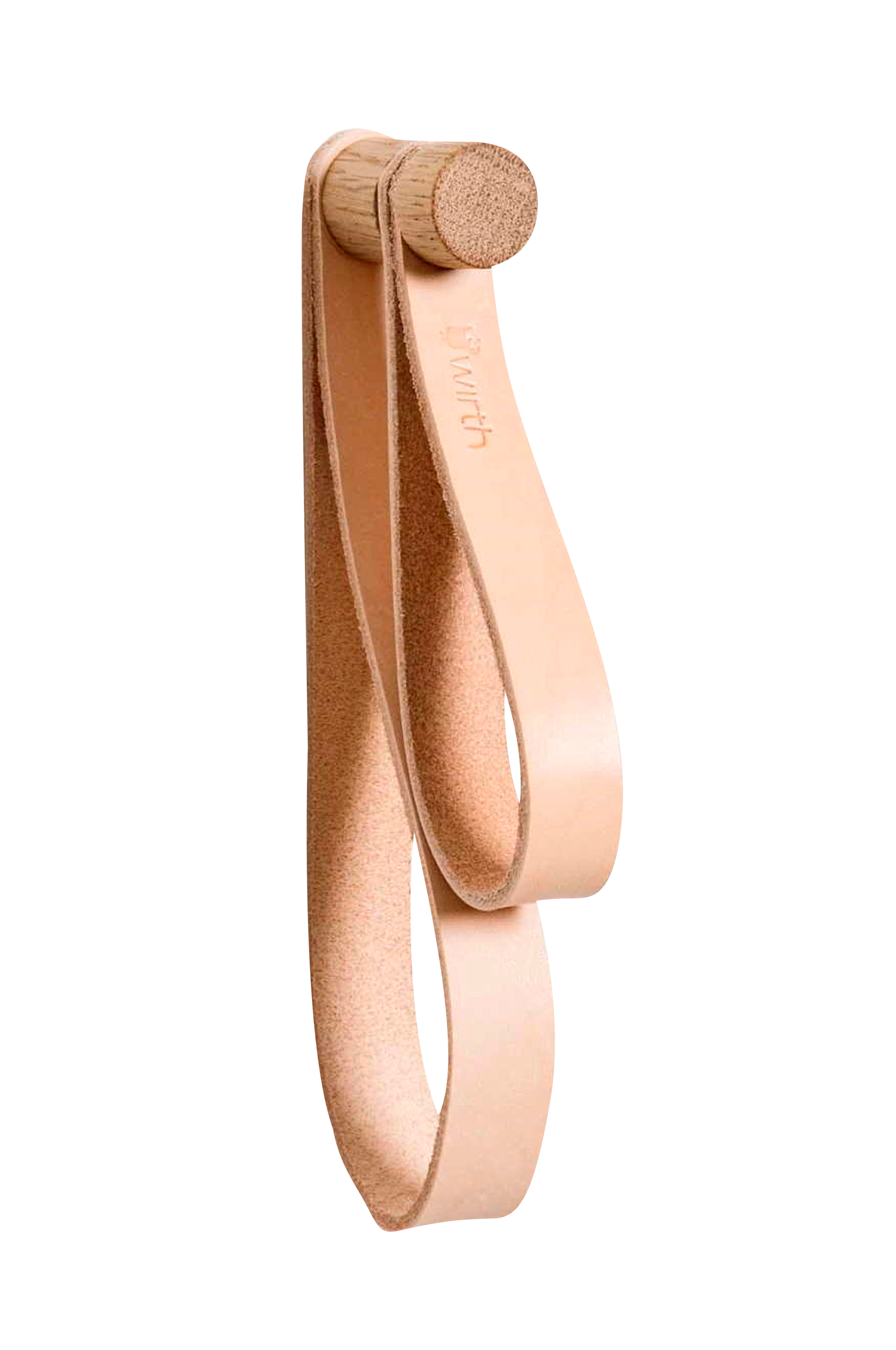 Double Loop on tammesta ja kahdesta nahkalenkistä muodostuva seinäkoukku, joka sopii keittiöpyyhkeille, lehdille ja monille muille tavaroille. Mitat: pituus 1,8 cm, leveys 4 cm, korkeus 13 cm. Materiaali: tammea, nahkaa