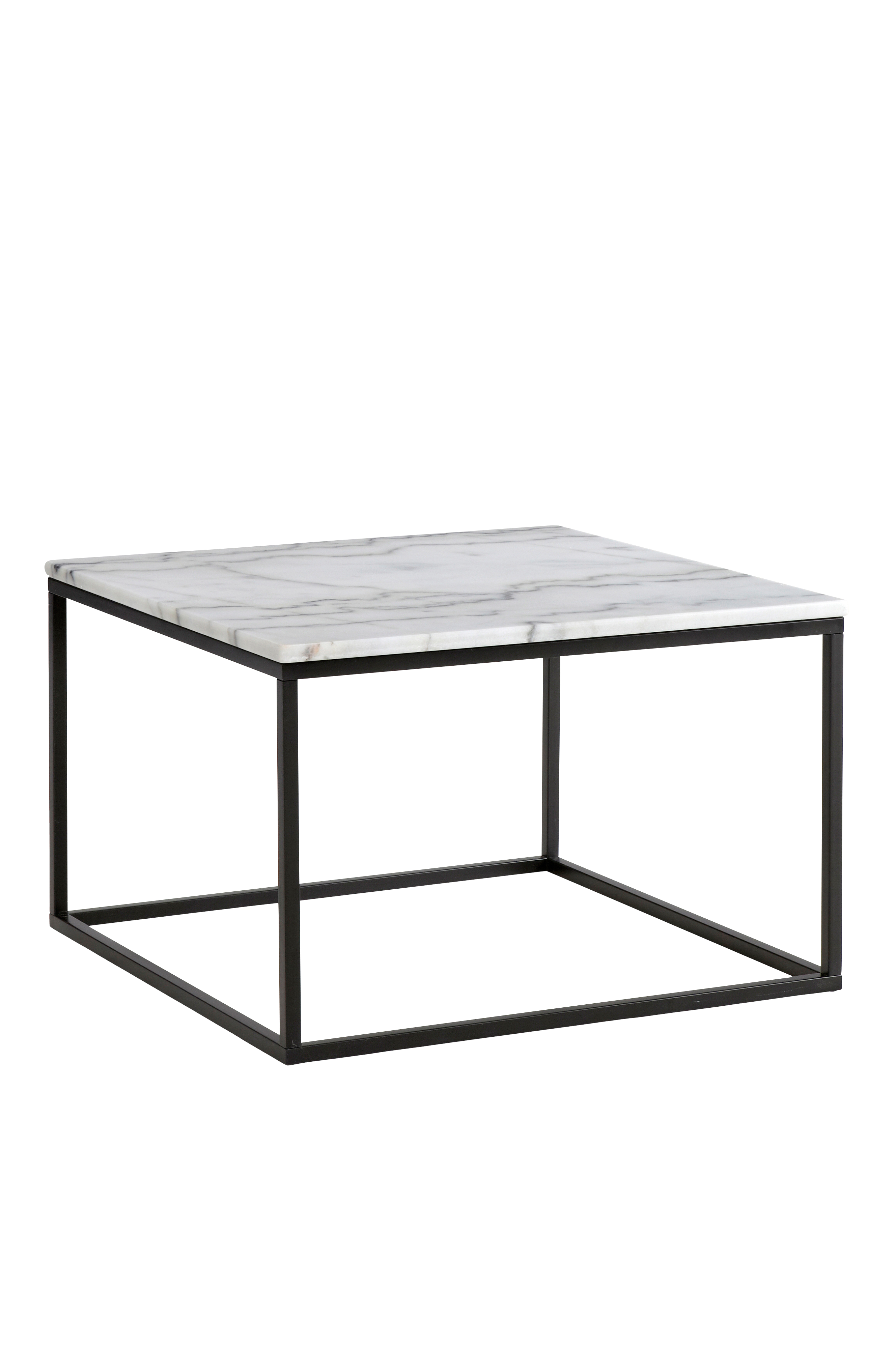 Marmoripöytä, jossa metallirunko. Koko 75 x 75 cm. Korkeus 48 cm. Marmori on luonnonmateriaali, jossa voi esiintyä pieniä koko-, väri- ja pintaeroja.