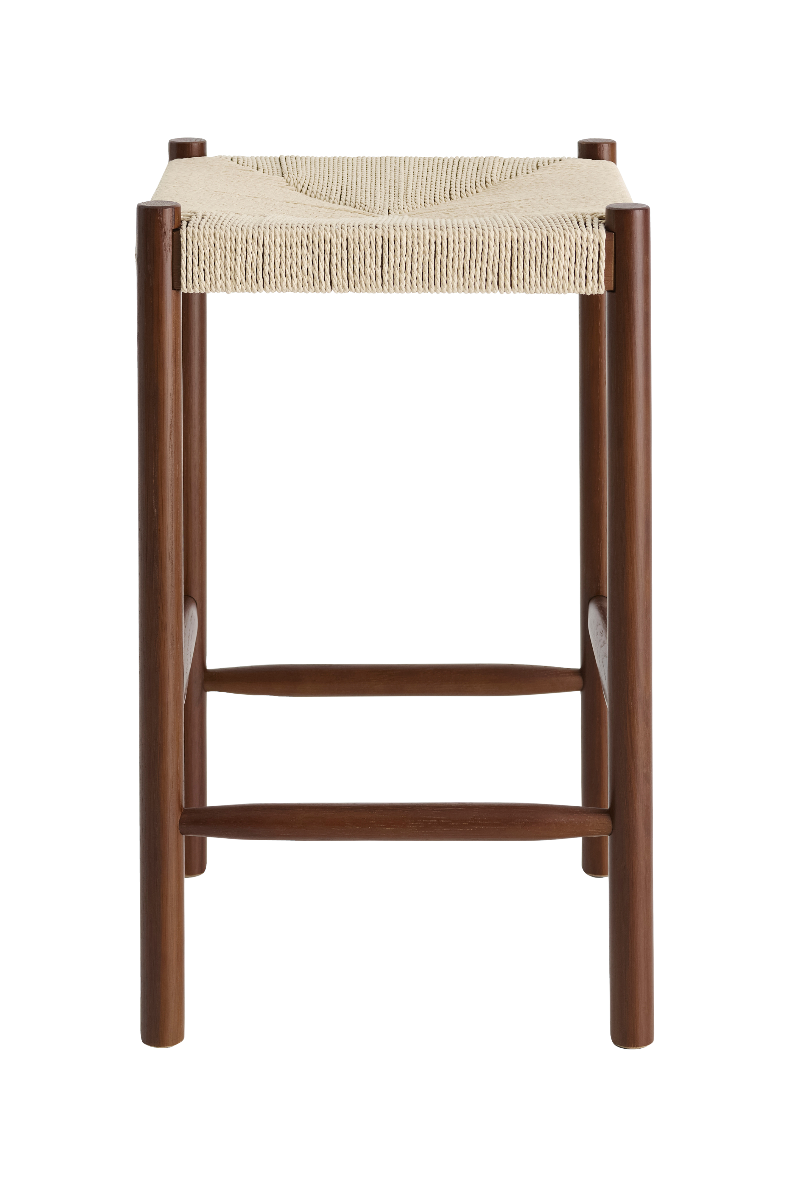 Baarijakkara, jonka jalat ja runko massiivitammea. Istuinosa punottua, vahattua paperinarua.