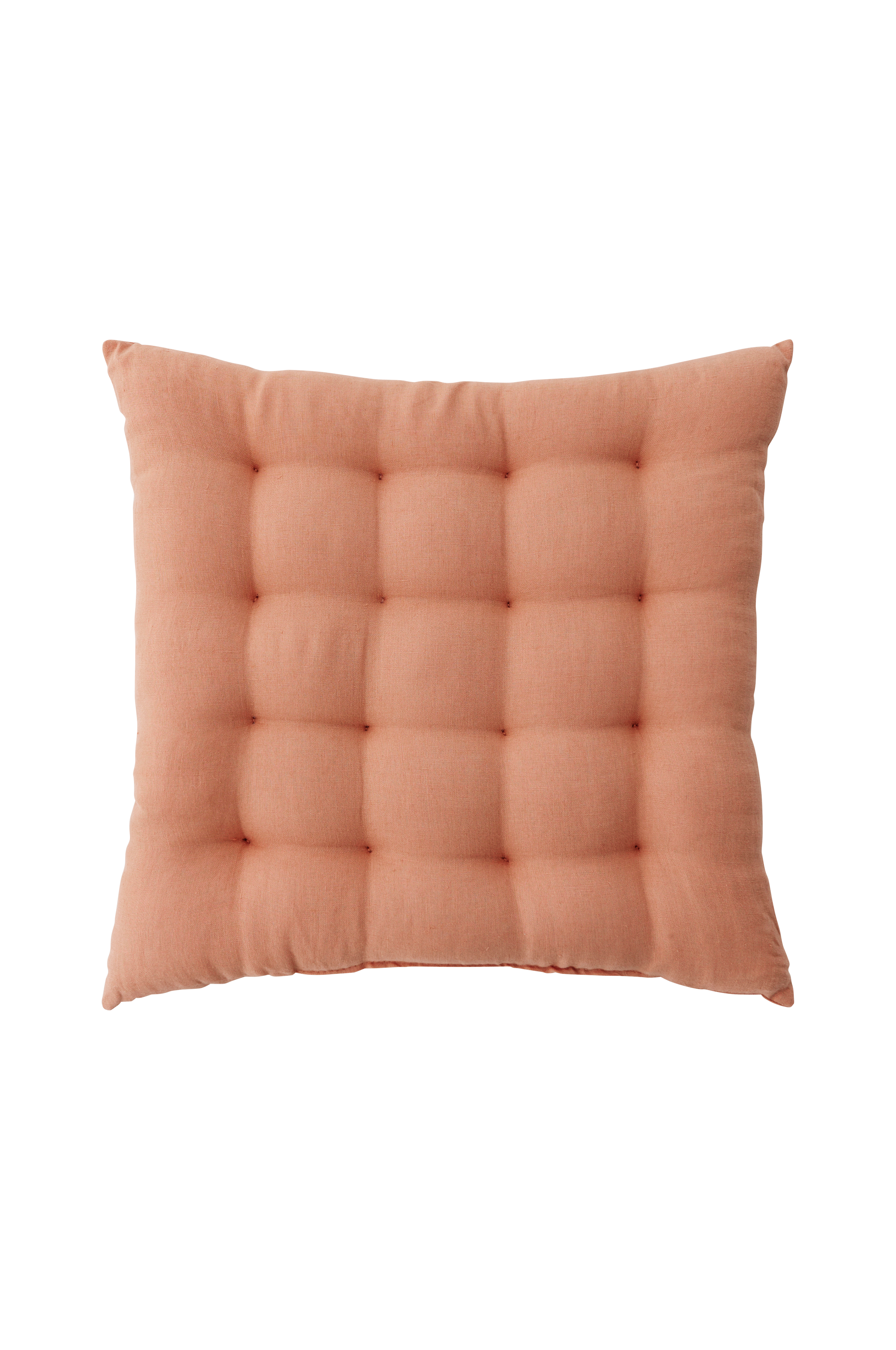 Istuintyyny pehmeää, pestyä ranskalaista pellavaa. Vintagelook ja koristeelliset käsin ommellut saumat. Täyte polyesteriä. Koko 40x40x5 cm.