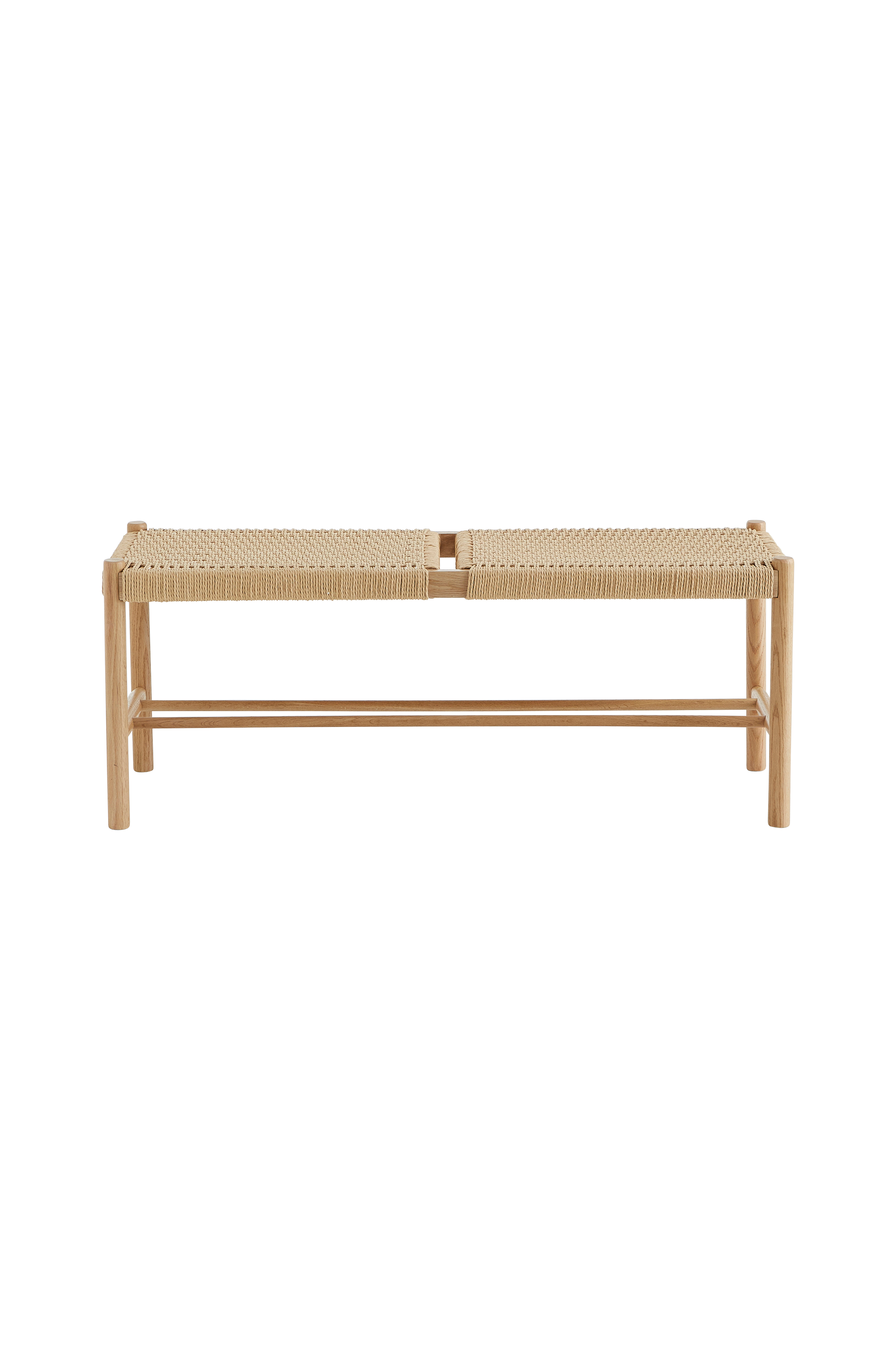 Helposti sijoitettava penkki, jossa on alahylly esim. kenkiä varten. Penkki sopii hyvin esimerkiksi eteiseen, makuuhuoneeseen ja keittiöön. Runko massiivitammea. Istuin punottua, vahattua paperinarua. Alahylly. Etäisyys lattiasta alahyllyyn 16,5 cm. Enimmäiskuormitus 220 kg.
