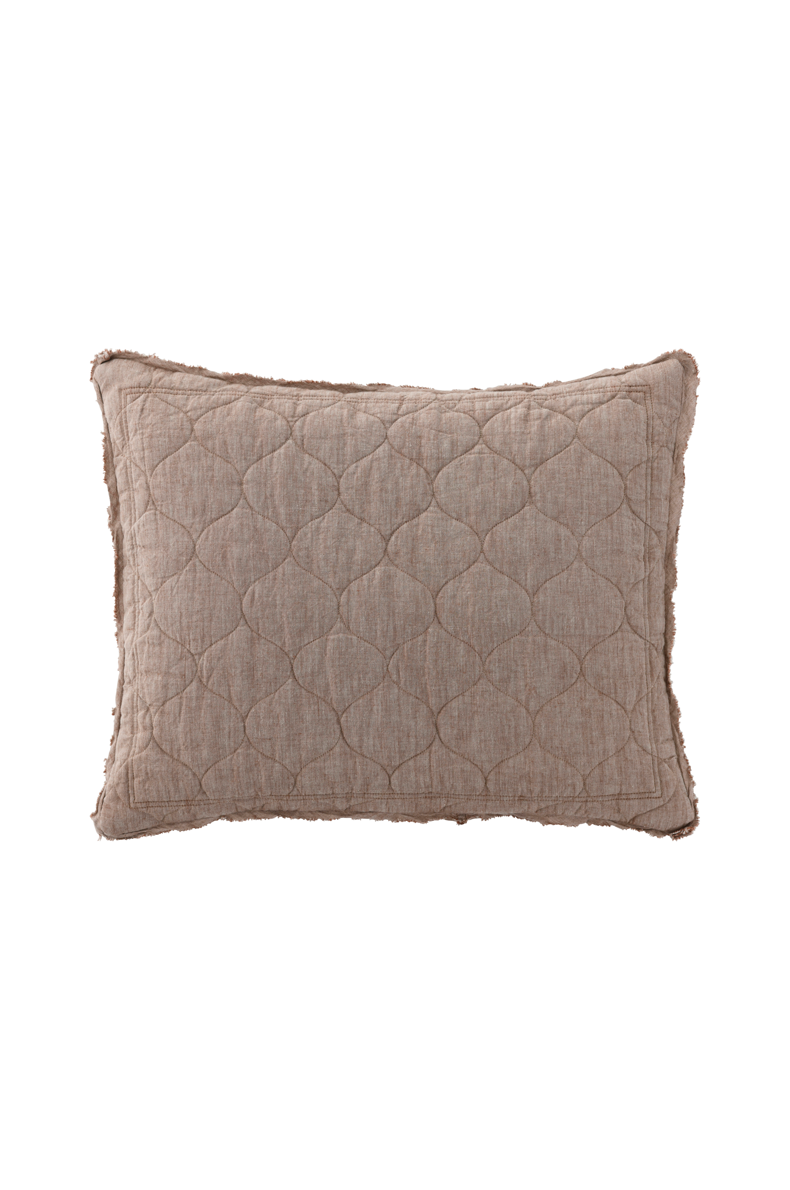 Tyynynpäällinen pestyä eläväpintaista pellavakambrikkia. Tikattu kuvio ja raakareunat. Pehmuste 100% polyesteriä. Toinen puoli yksiväristä puuvillaa. Koko 50x60 cm.