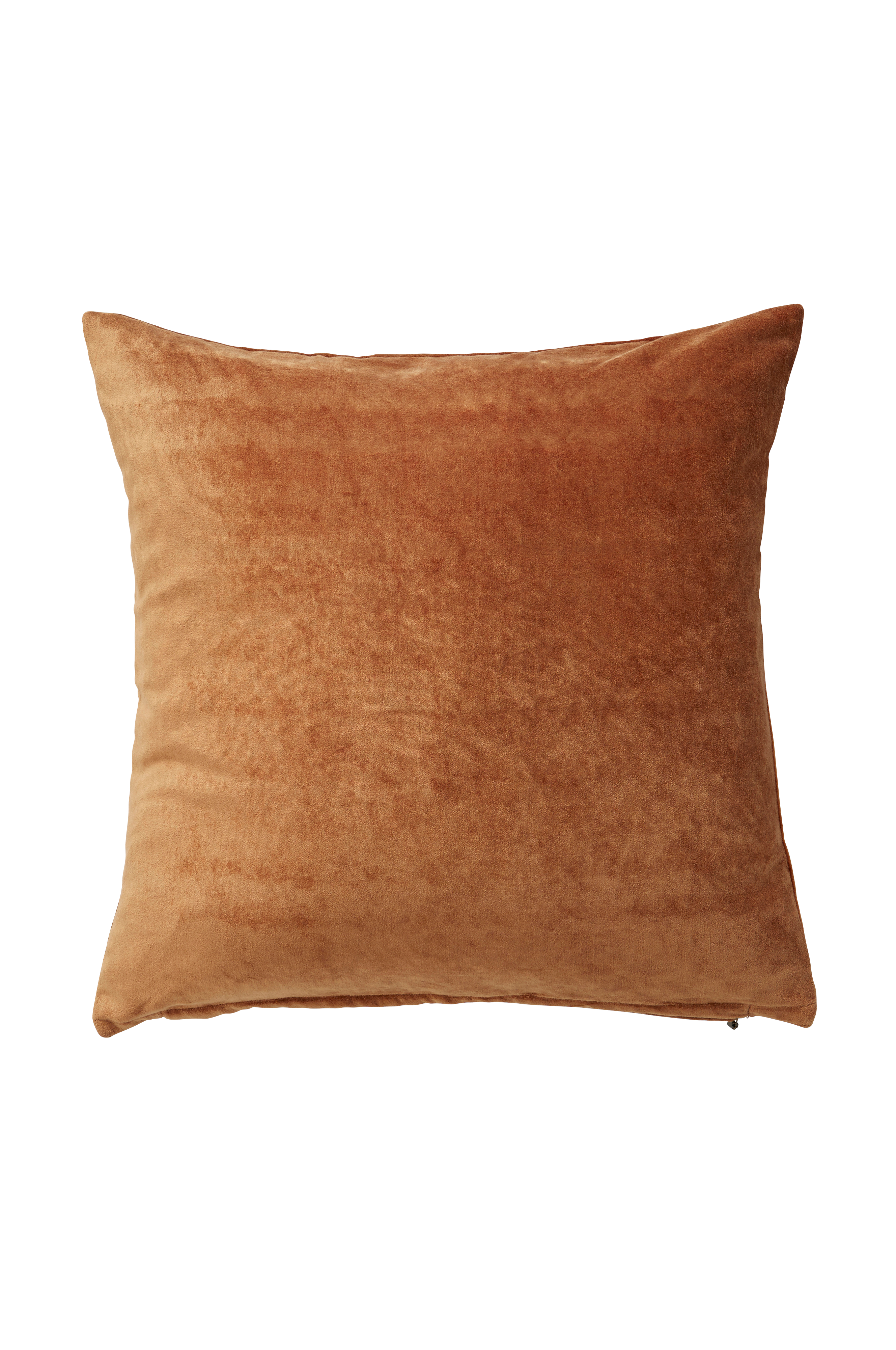 Tyynynpäällinen pehmeää ja hohtavaa viskoosisamettia. Metallivetoketju alareunassa. Koko 50 x 50 cm.
