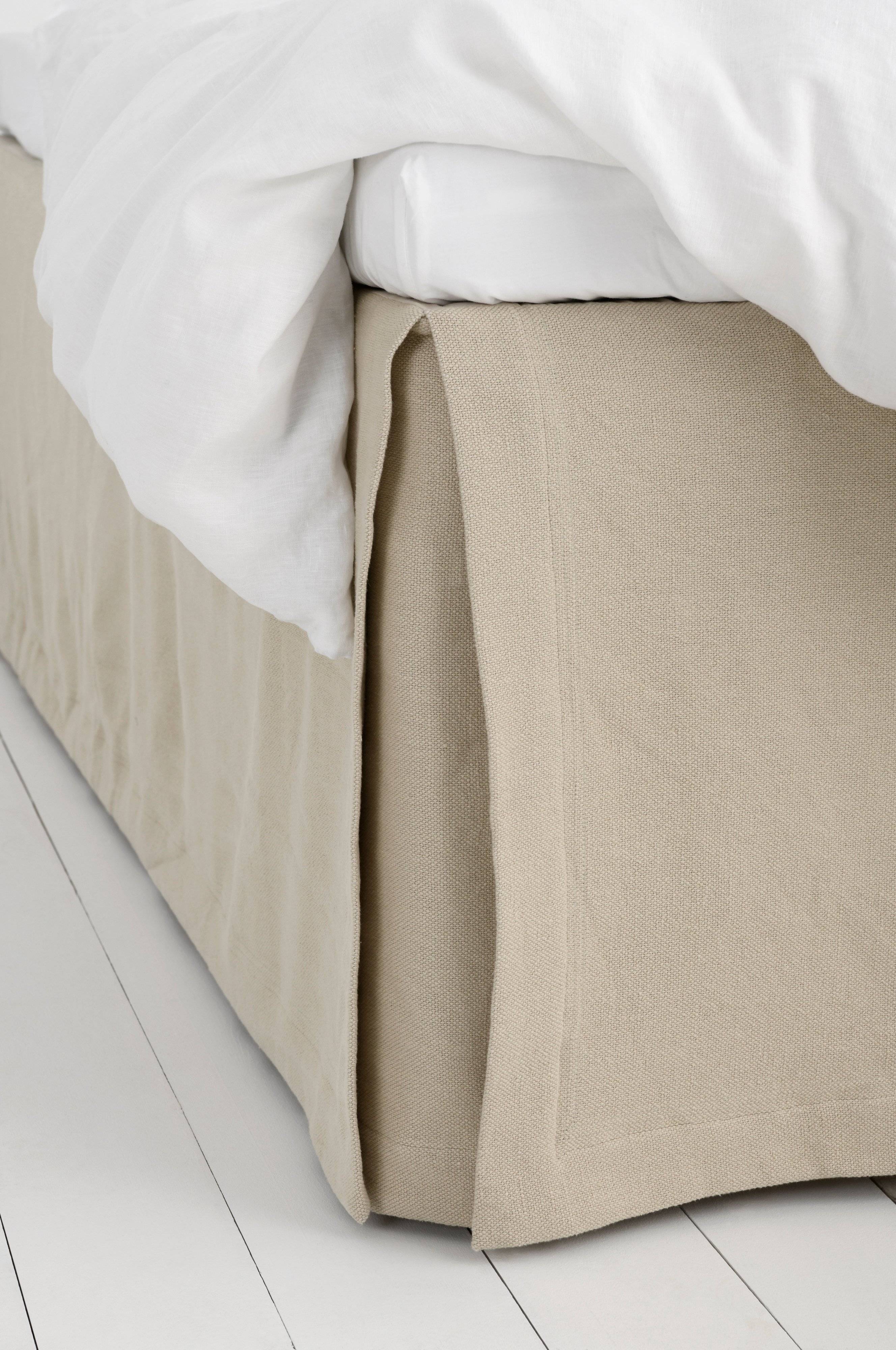 Helmalakana jenkkisänkyyn. Helma napakkaa ja pintakuvioitua pellava-puuvillasekoitetta. Päällysosa puuvillaa. Helman korkeus 60 cm. Toimitetaan tikatussa olkalaukussa, jota voi käyttää myös myöhemmin.