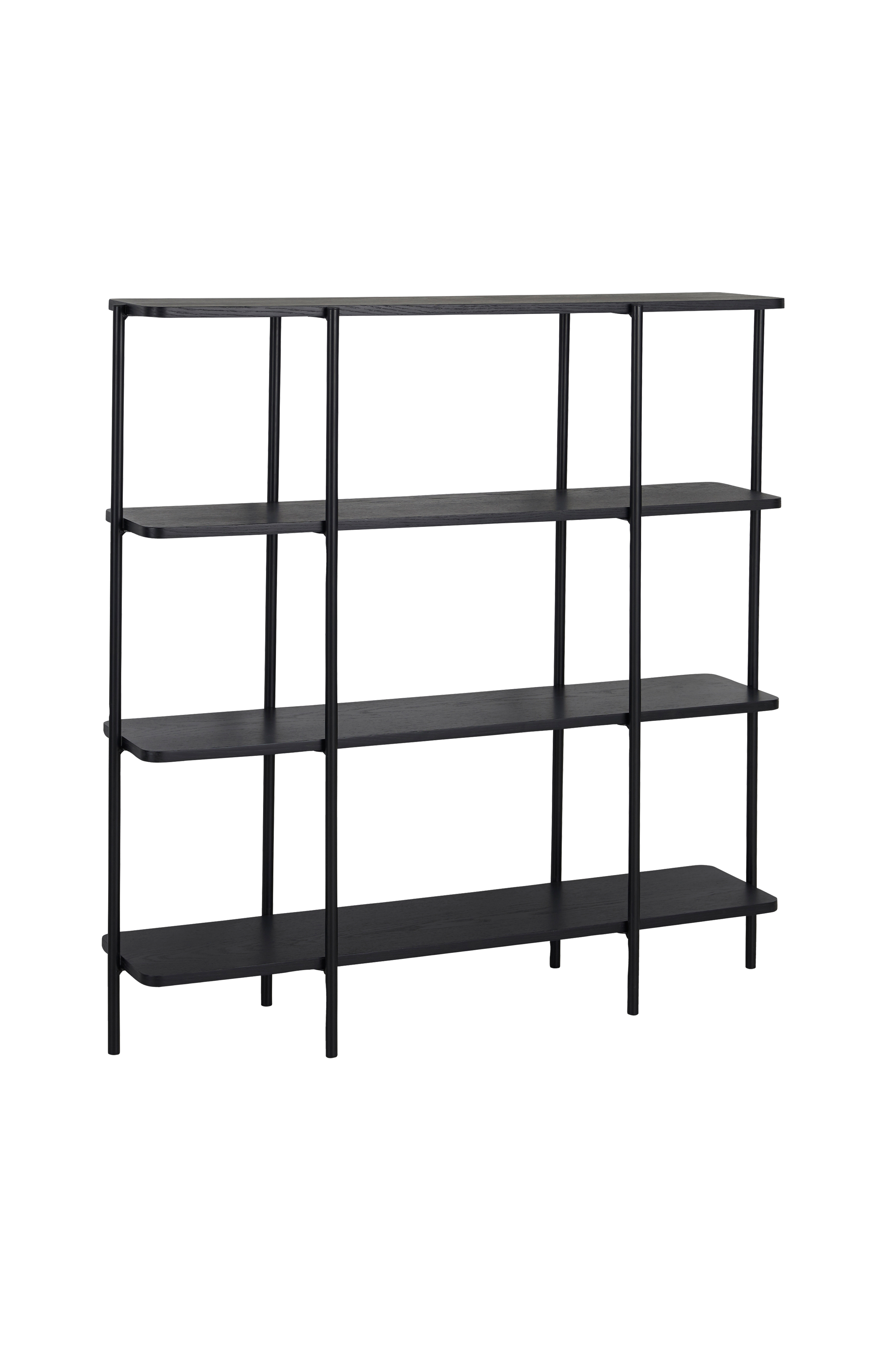 Hyllykkö, jossa runko jauhemaalattua metallia ja 4 kiinteää hyllytasoa tammiviilutettua MDF-levyä. Leveys 120,5 cm, korkeus 121 cm, syvyys 30,5 cm. Hyllytasojen välinen etäisyys 33 cm. Jokaisen hyllytason enimmäiskuormitus 20 kg. Toimitetaan osina.