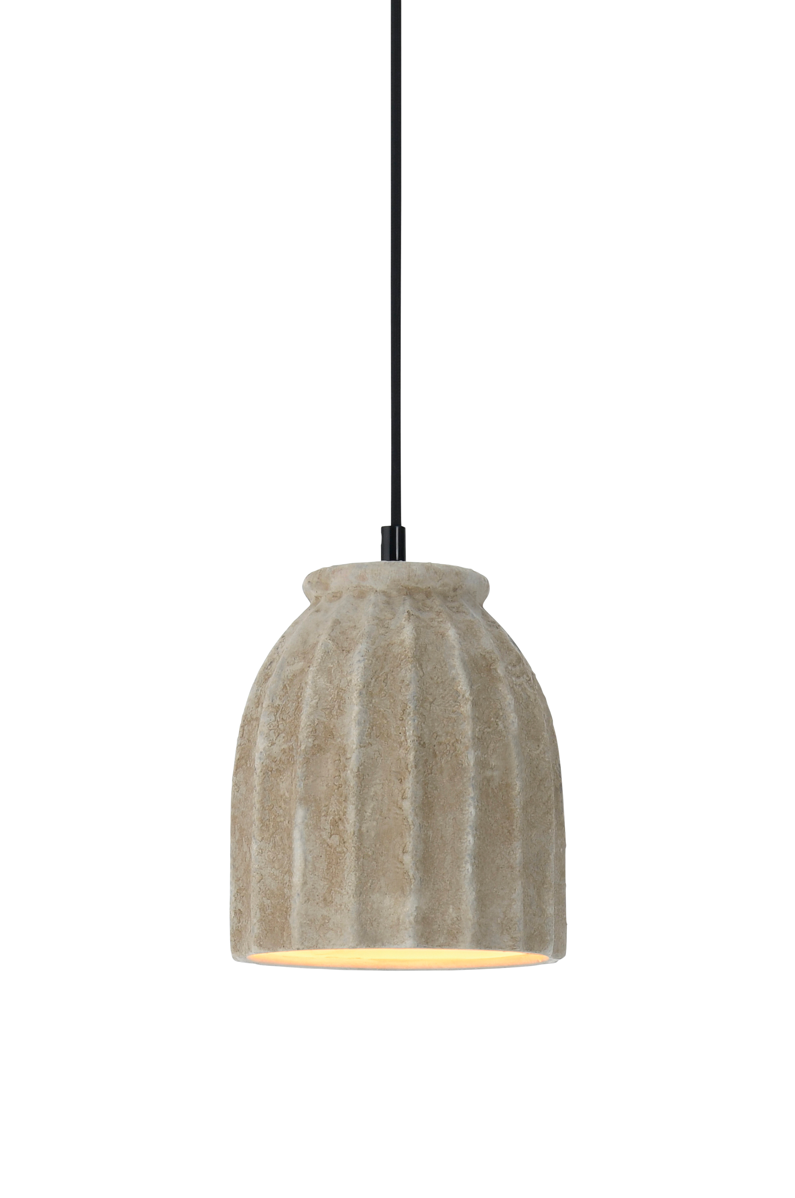 Ikkunavalaisin raitapintaista keramiikkaa. Musta muovijohto, jossa seinäpistoke. Valonlähde ei sisälly toimitukseen.