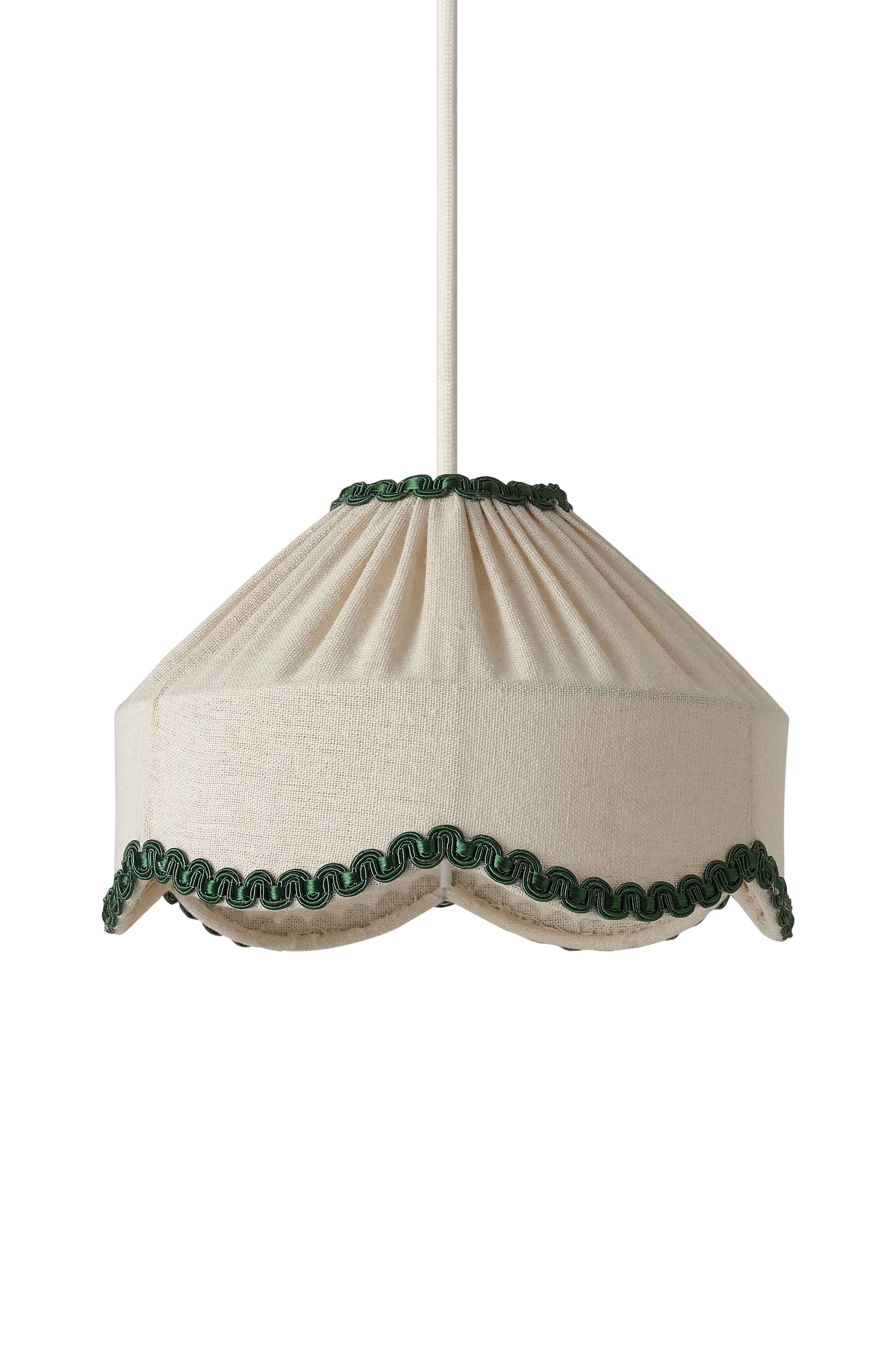 • Laskostettu Ikkunavalaisin kankaasta koristeellisella, aaltoilevalla reunalla