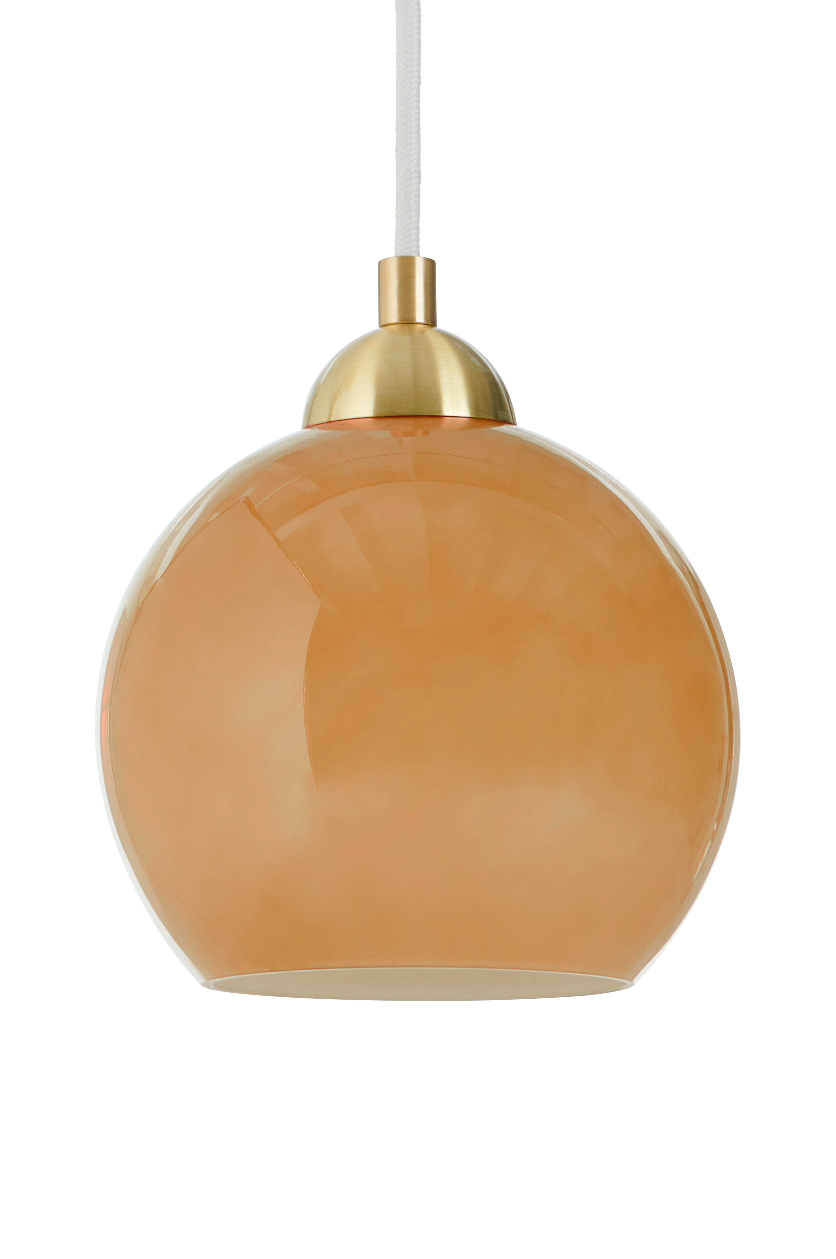 Ikkunavalaisin maalattua, kiiltävää lasia. Yksityiskohdat metallia, jossa harjattu, messinginvärinen pinta. Kangasjohto, jossa virtakatkaisin ja seinäpistoke. Valonlähde ei sisälly toimitukseen.