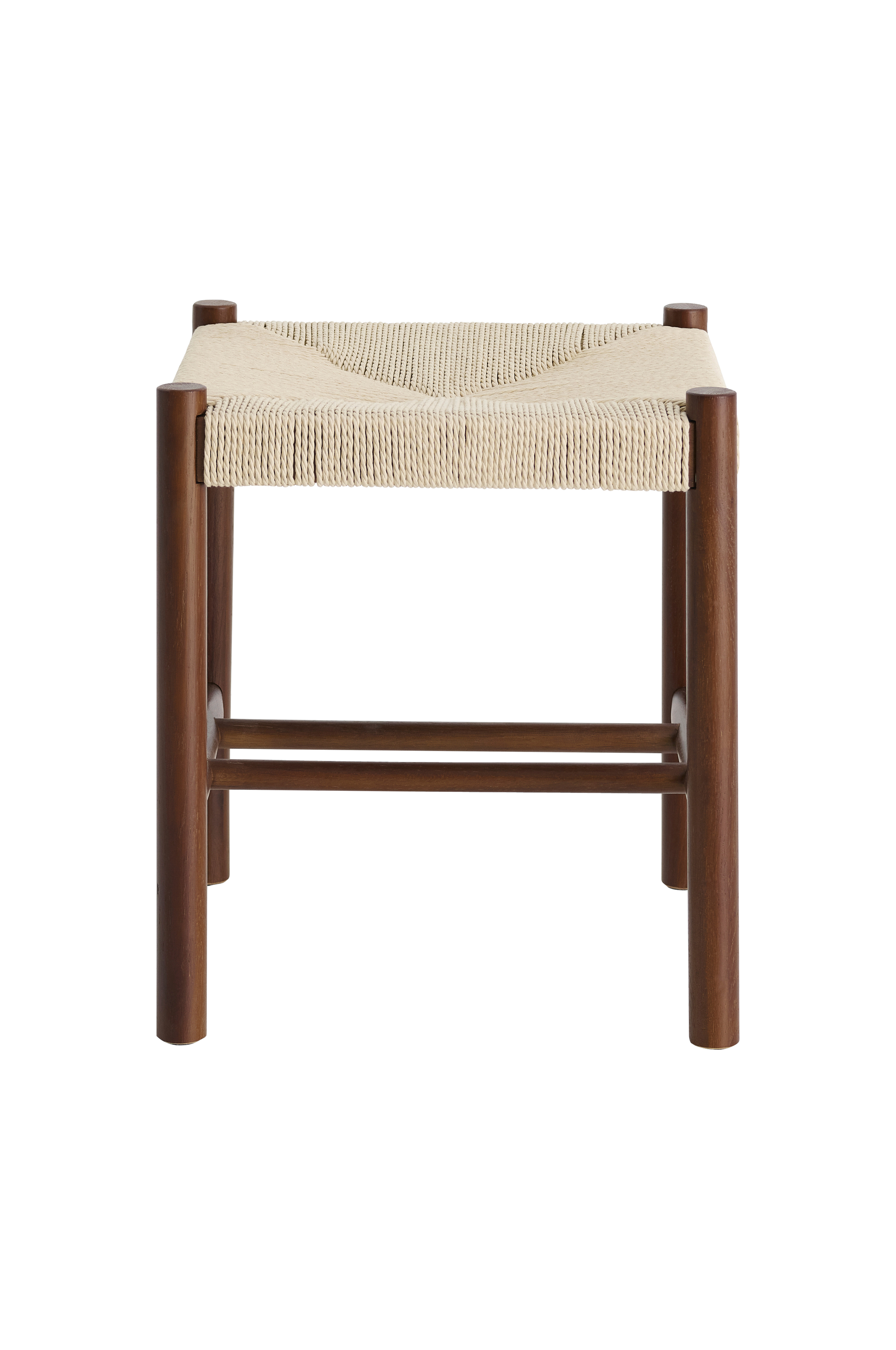 Jakkara, jonka jalat ja runko massiivitammea. Istuinosa punottua, vahattua paperinarua.