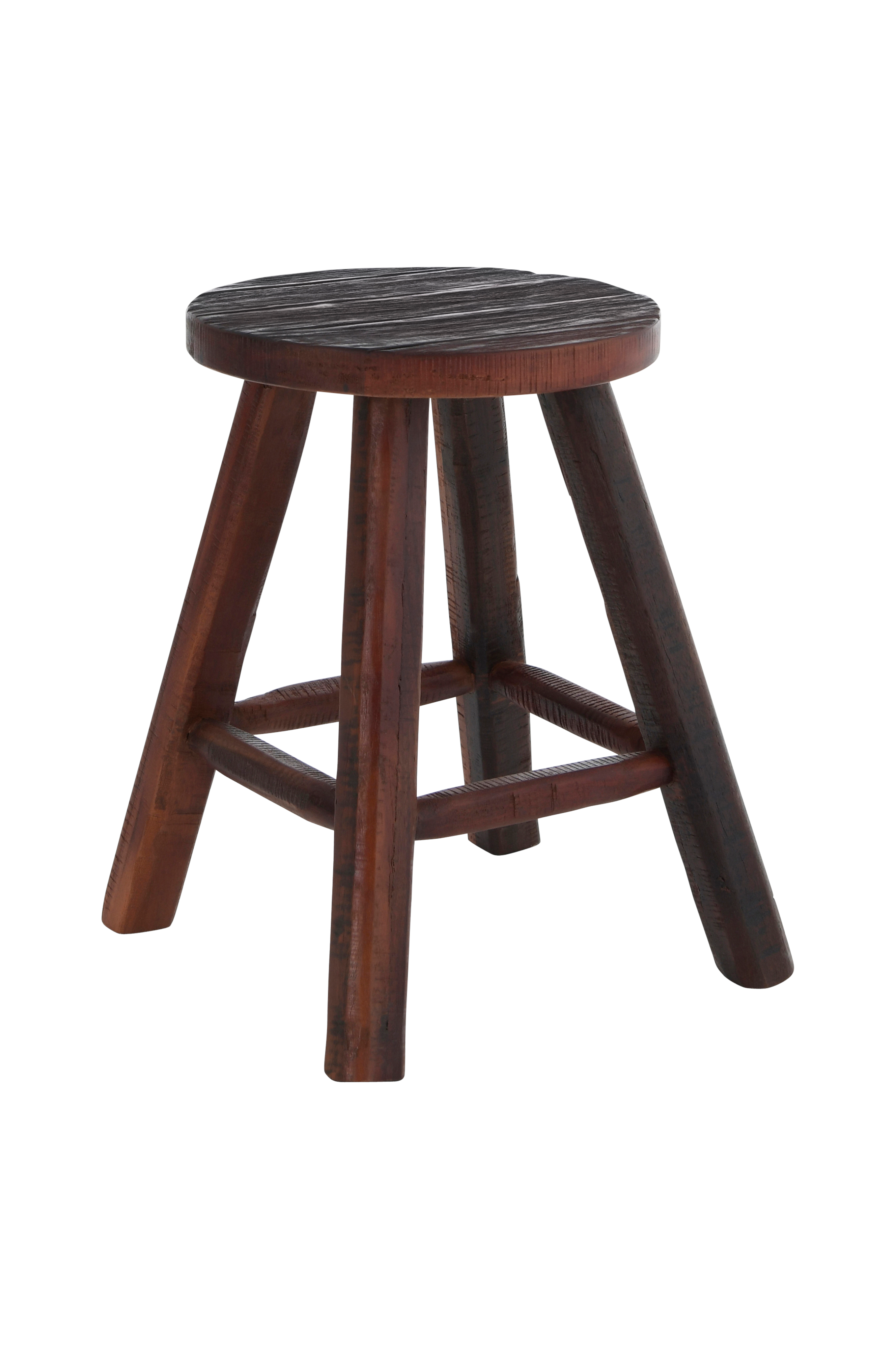 Käsintehty jakkara, joka on valmistettu kierrätetystä puusta. Kuvioitu, uritettu pinta istuinosassa. Istuinosan halkaisija 30 cm.
