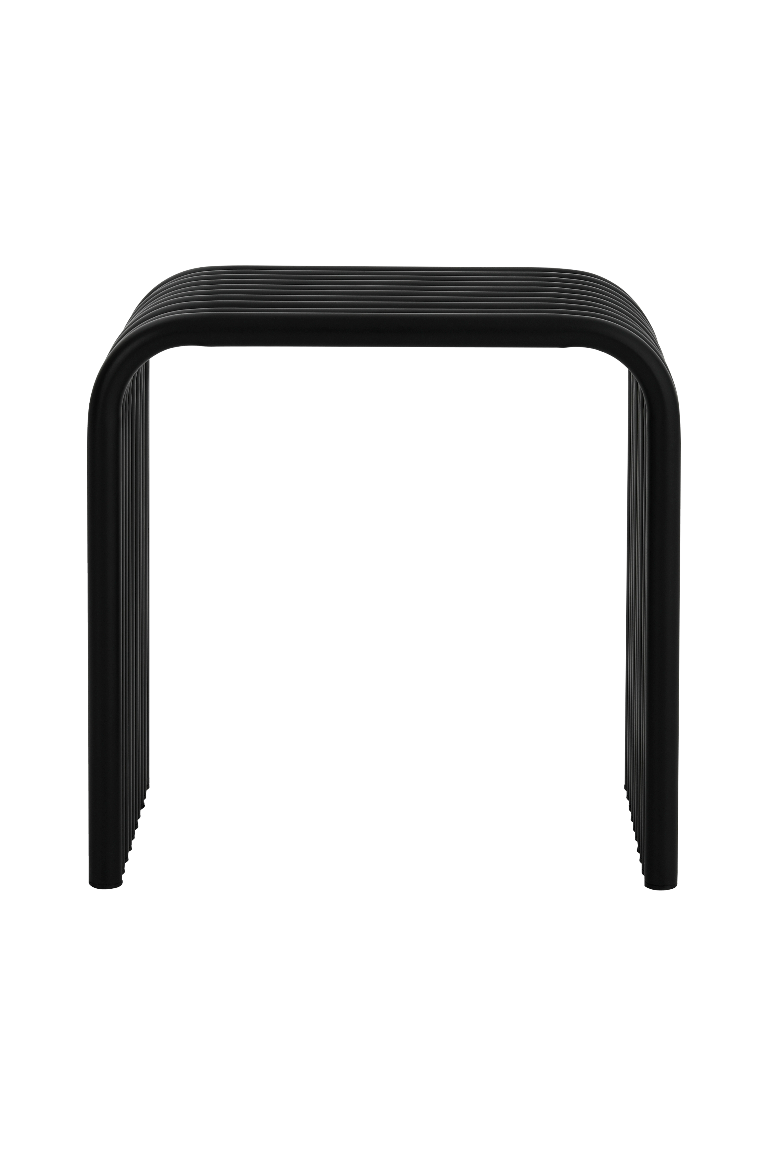 Metallinen jakkara/sivupöytä, jossa yhteen liitetyt putket muodostavat raitakuvion. Enimmäiskuormitus 100 kg. Muovitassut alla. Toimitetaan koottuna.