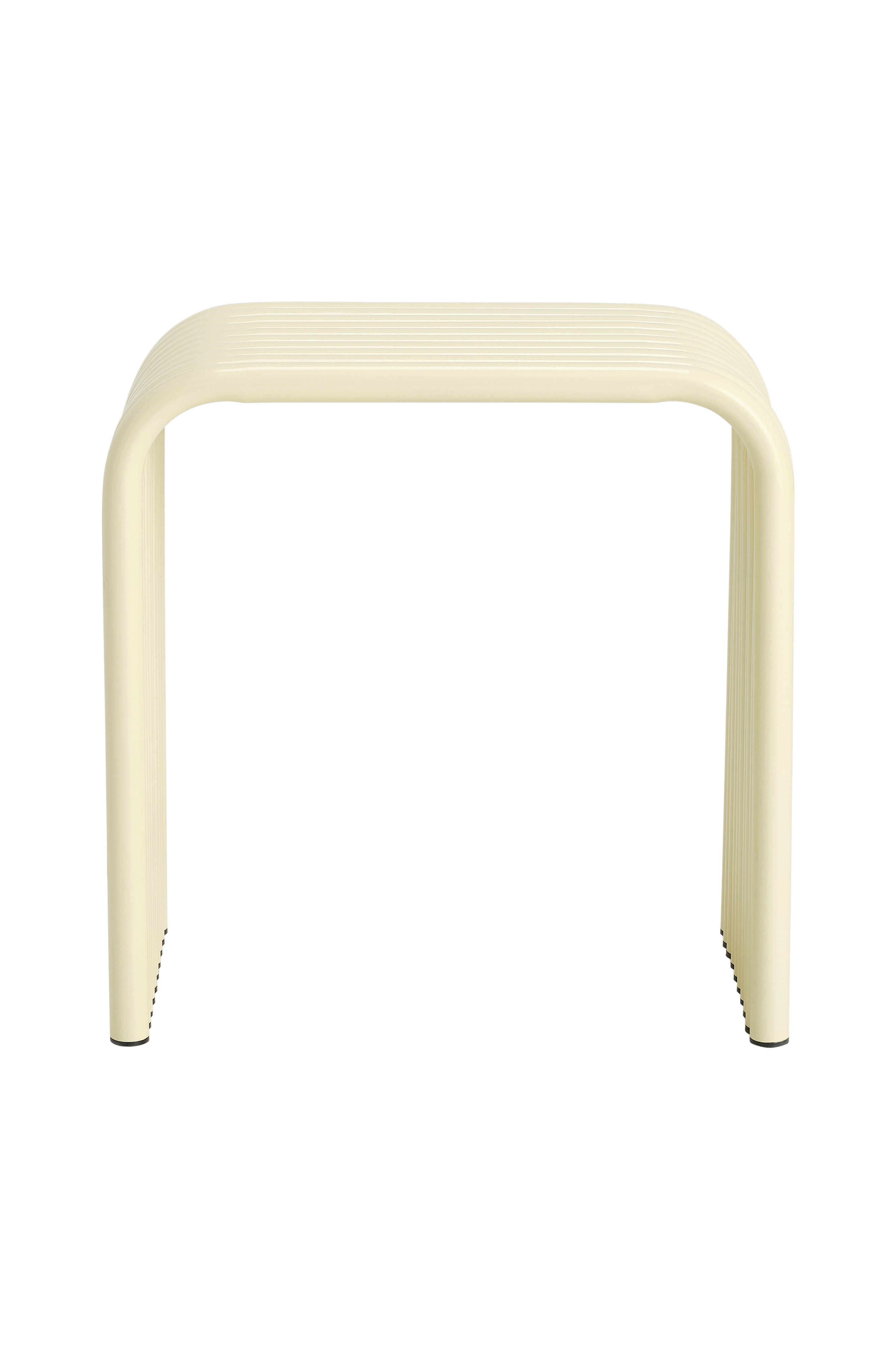 Metallinen jakkara/sivupöytä, jossa yhteen liitetyt putket muodostavat raitakuvion. Enimmäiskuormitus 100 kg. Muovitassut alla. Toimitetaan koottuna.