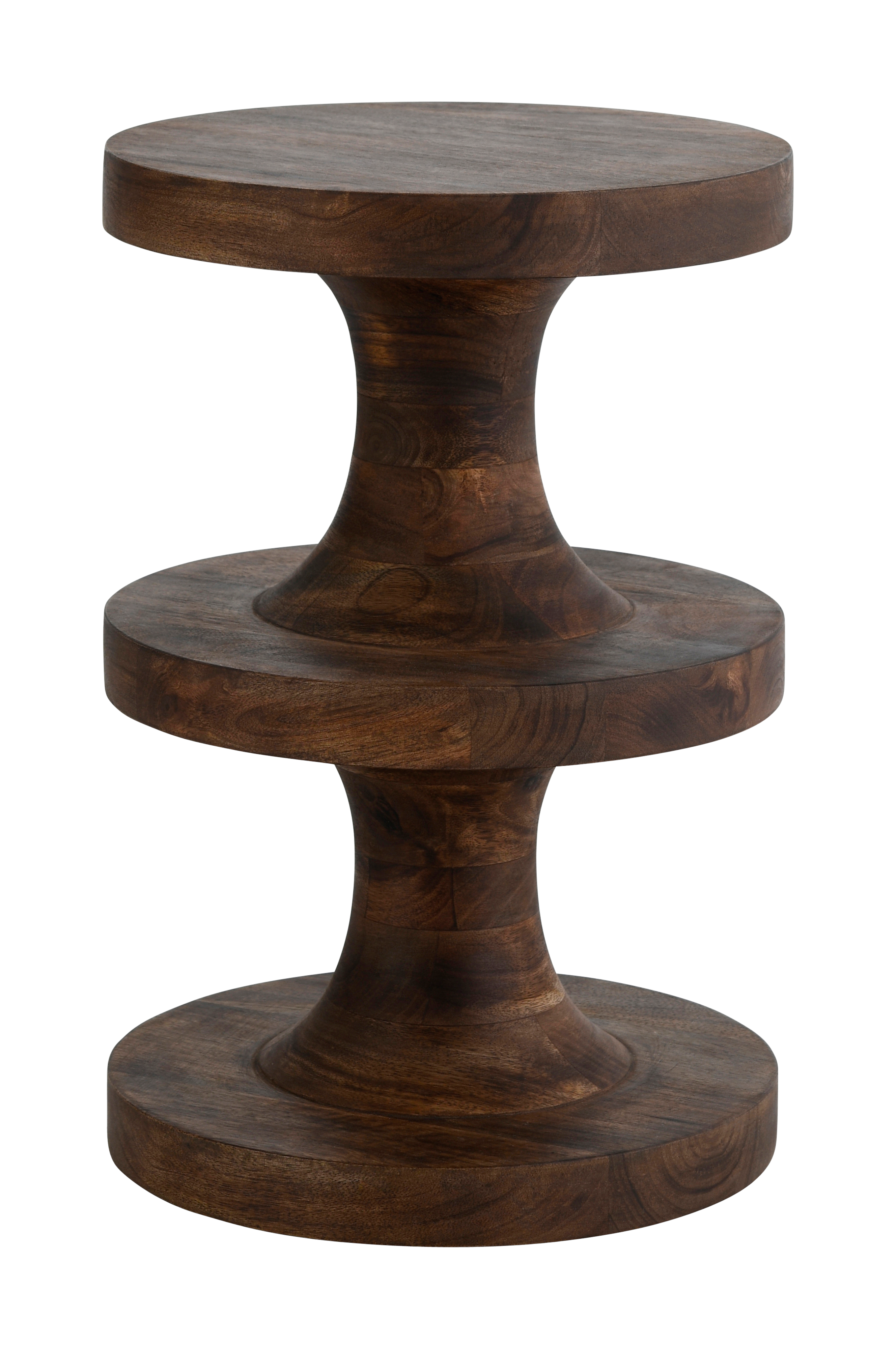 Mangopuinen jakkara, jossa raskautta ja vakautta lisäävä rautaydin. Korkeus 45 cm, Ø 30 cm. Toimitetaan koottuna.