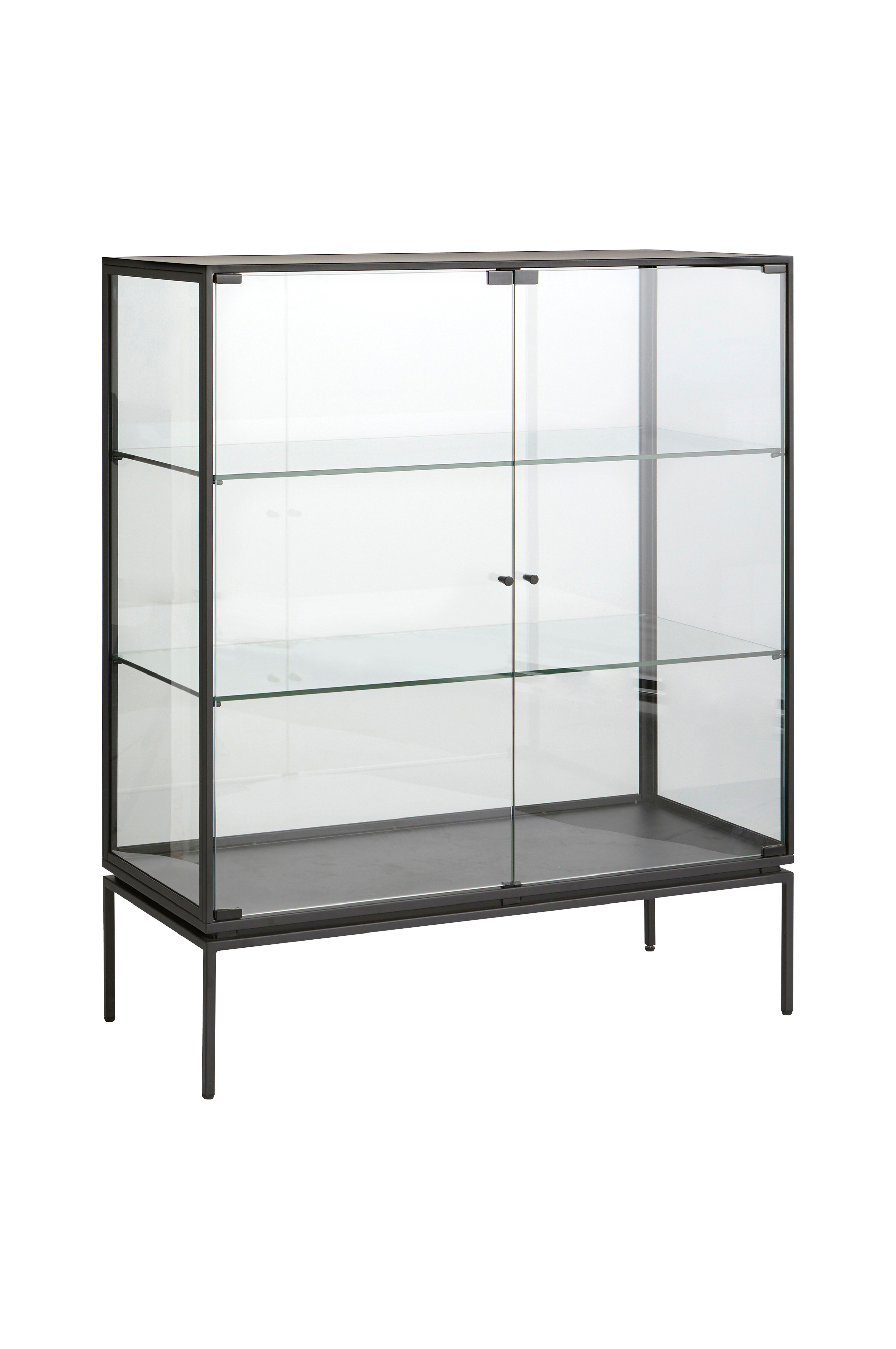 Kaappi karkaistua lasia ja jauhemaalattua rautaa, jossa mattapintainen viimeistely. Kiinteät hyllytasot. Alimmainen hyllytaso on metallia ja kaksi ylintä karkaistua lasia (enimmäiskuormitus jokaiselle lasihyllylle 15 kg). 2 ovea, joissa magneetit. Takana kaksi kiinnikettä seinälle kiinnittämistä varten. Leveys 100 cm, korkeus 120 cm, syvyys 45 cm. Jalkojen pituus 21 cm, hyllytasojen välinen korkeus n. 31,5 cm. Toimitetaan koottuna.