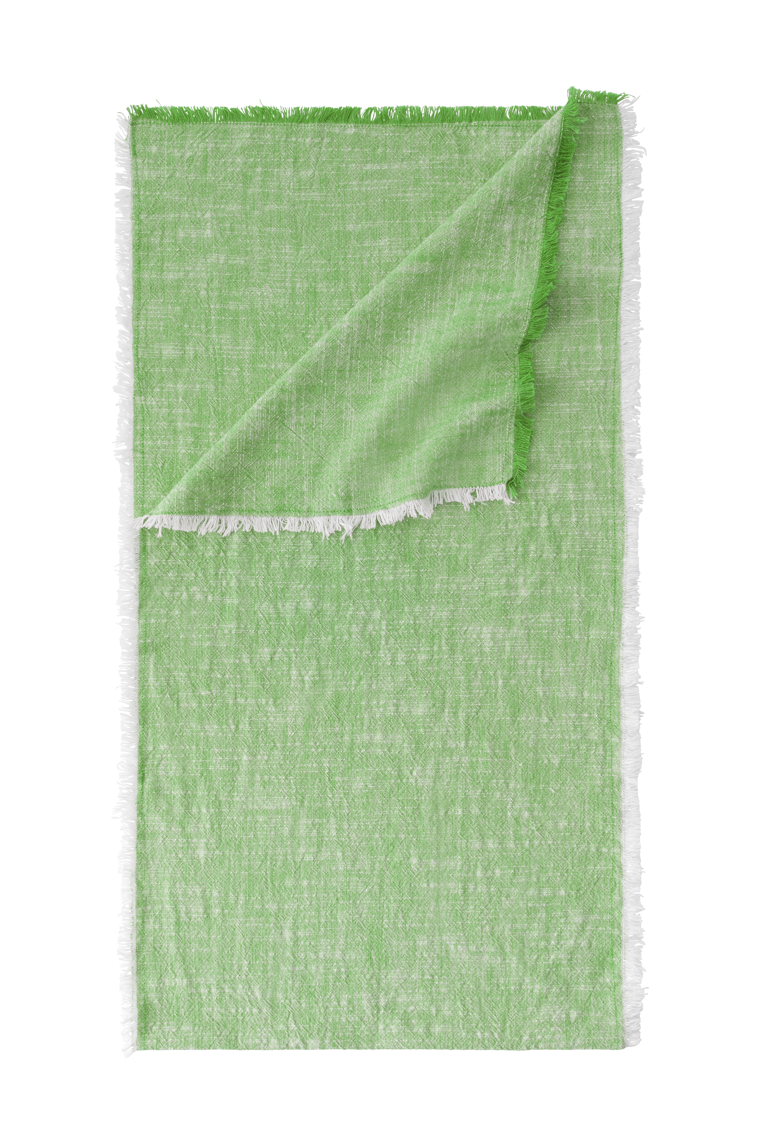 Kaitaliina eläväpintaista ekologista meleeratun väristä puuvillaa. Hapsut neljällä sivulla.