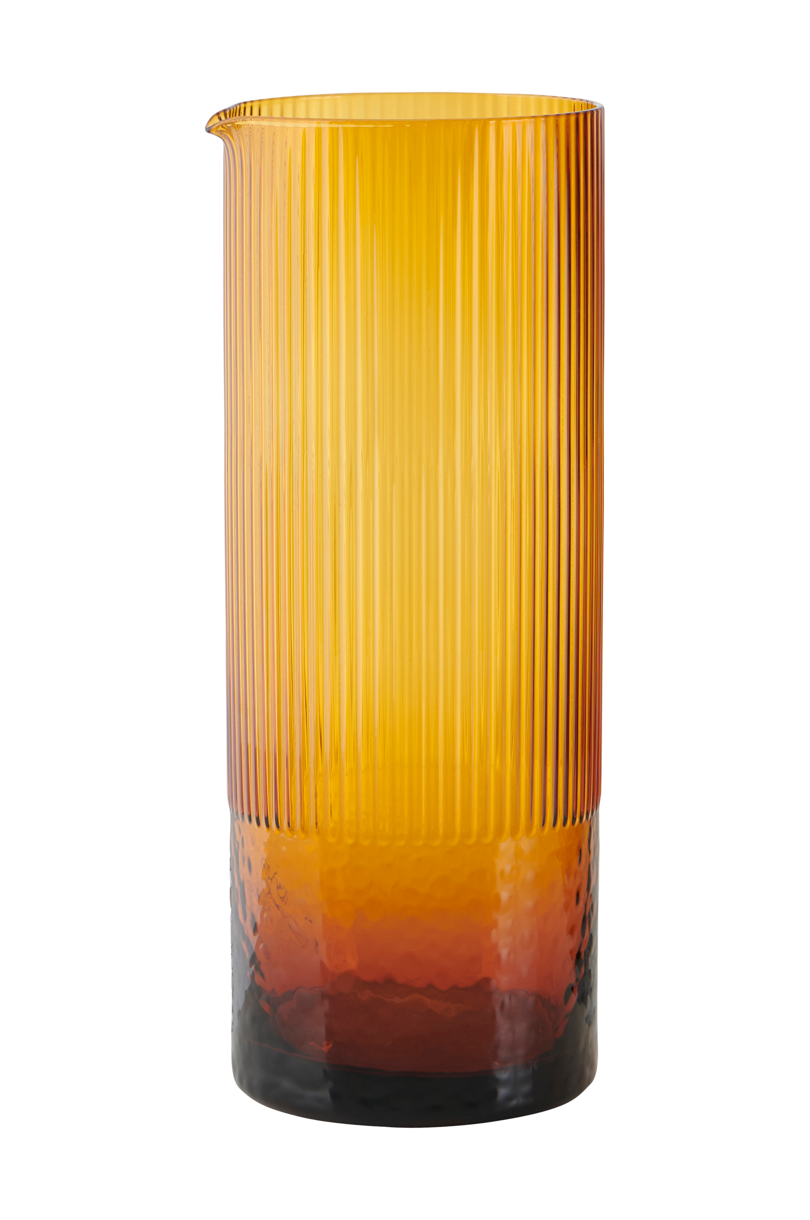Karahvi, jossa uurrettu pinta ylhäällä ja koristeellinen pintakuvio alhaalla. Vetoisuus: 1250 ml.