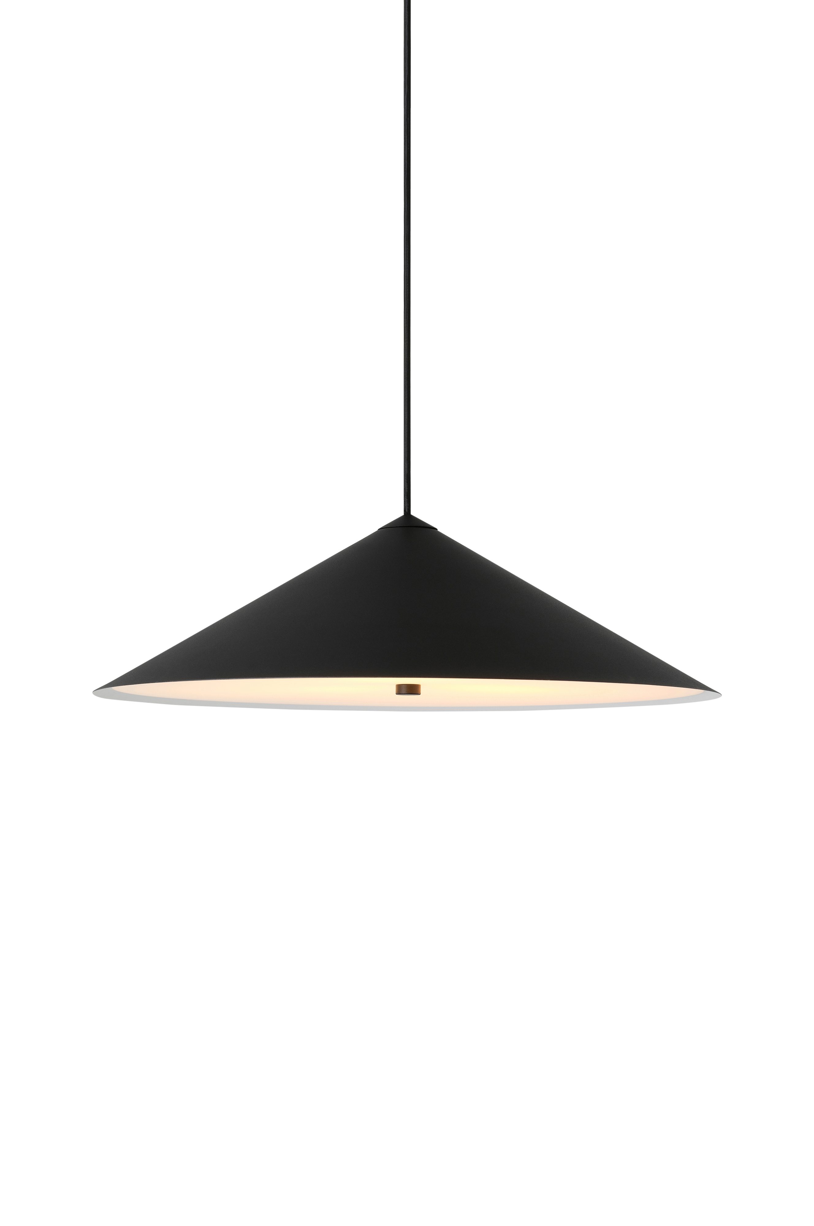 Maalattu metallinen kattovalaisin, jonka alapuolella oleva diffuusori antaa pehmeän, häikäisemättömän valon.