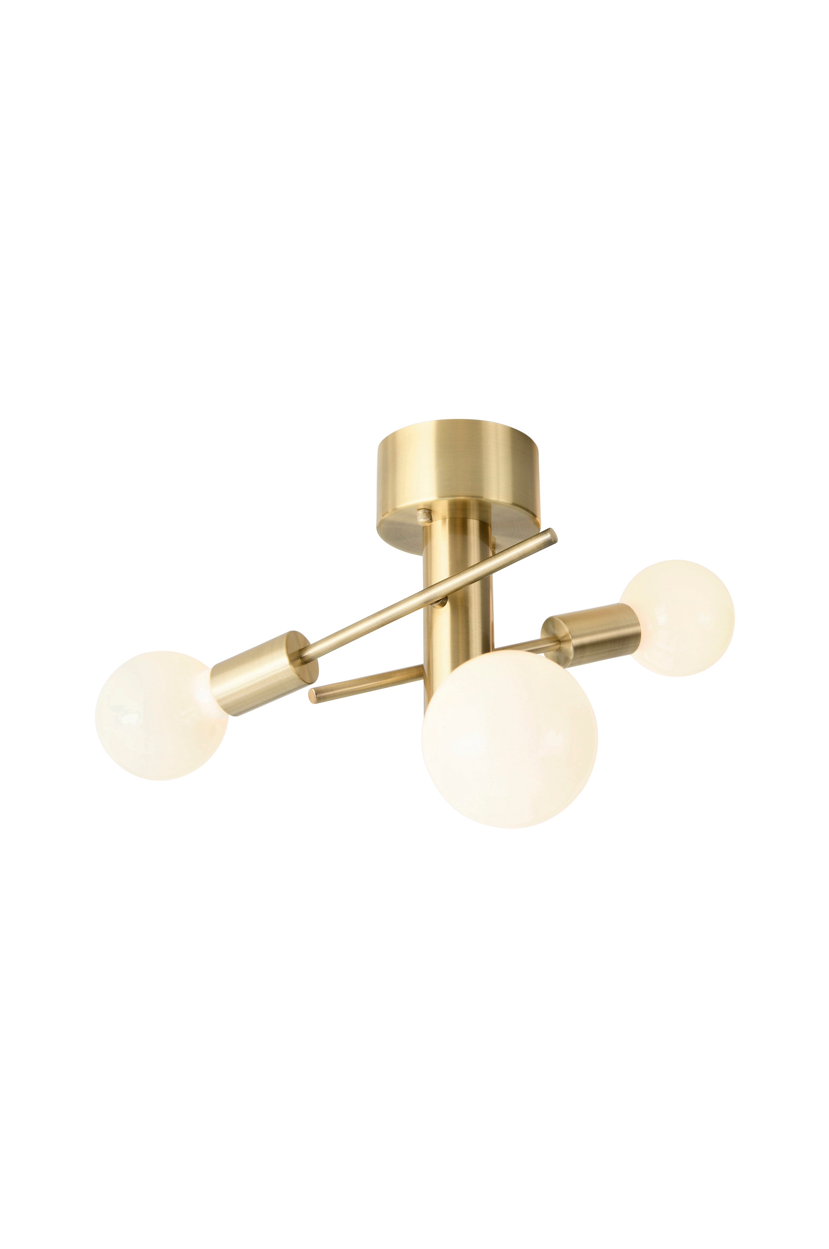 Metallinen kattovalaisin/kattoplafondi, jossa 3 kiinteää vartta. Pituus/varsi 27,5 cm. Kokonaiskorkeus katosta n. 23 cm. Kokonaishalkaisija 37 cm. Metallisen kattokupin Ø 12 cm, korkeus 6 cm. Asennetaan kattokiinnikkeen avulla. Lampunkanta 3 x E27. Enintään 25 W.