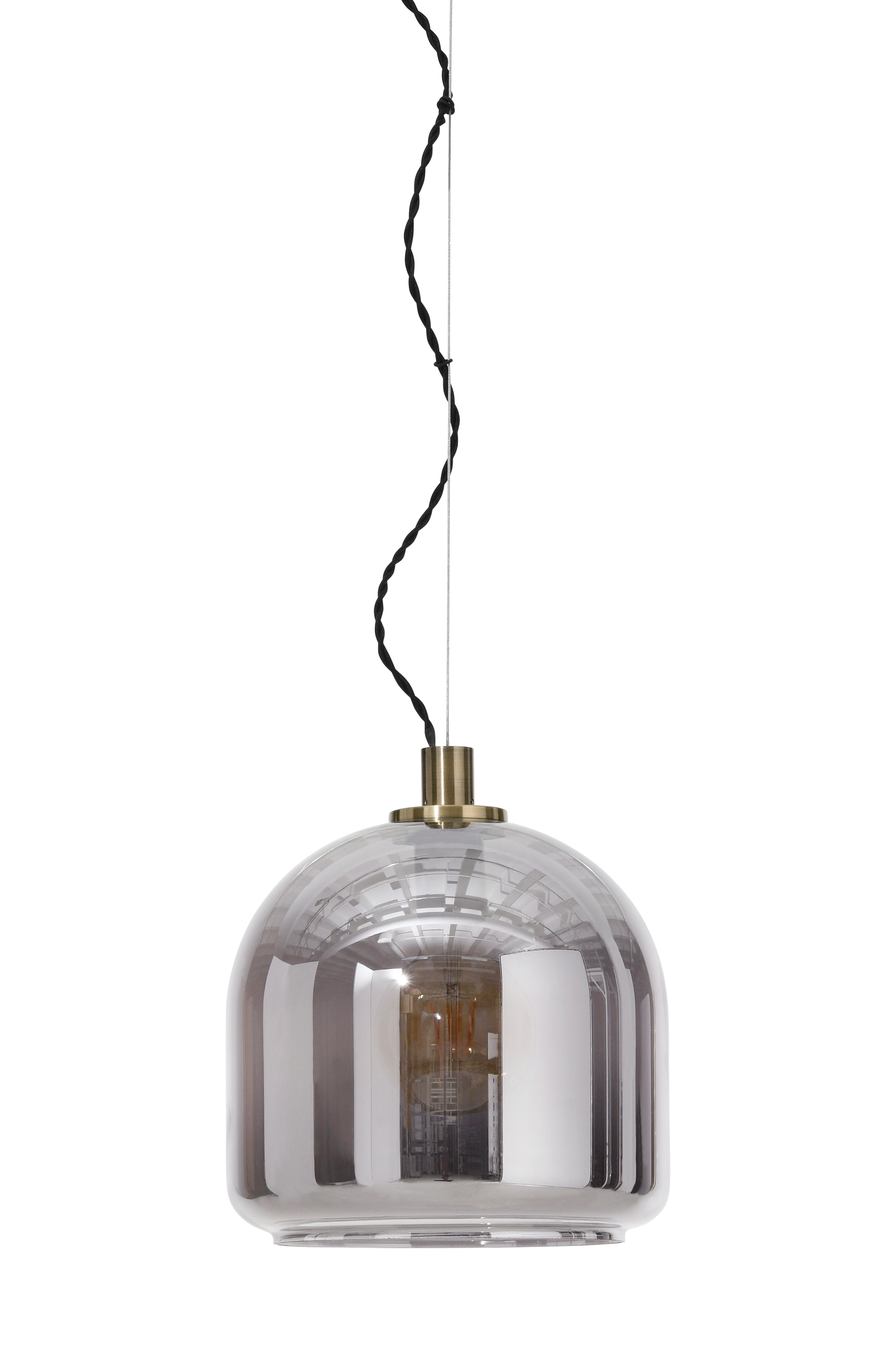 Kattovalaisin, jossa lasivarjostin. Ripustin metallia, jossa messinginvärinen viimeistely. Musta, kierretty 120 cm:n kangasjohto, jota voidaan lyhentää. Metallivaijeri. Kattokuppi messinginväristä metallia. Asennetaan ripustuskoukun avulla.